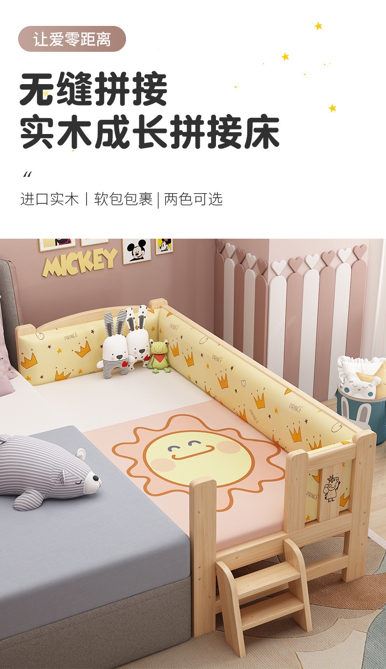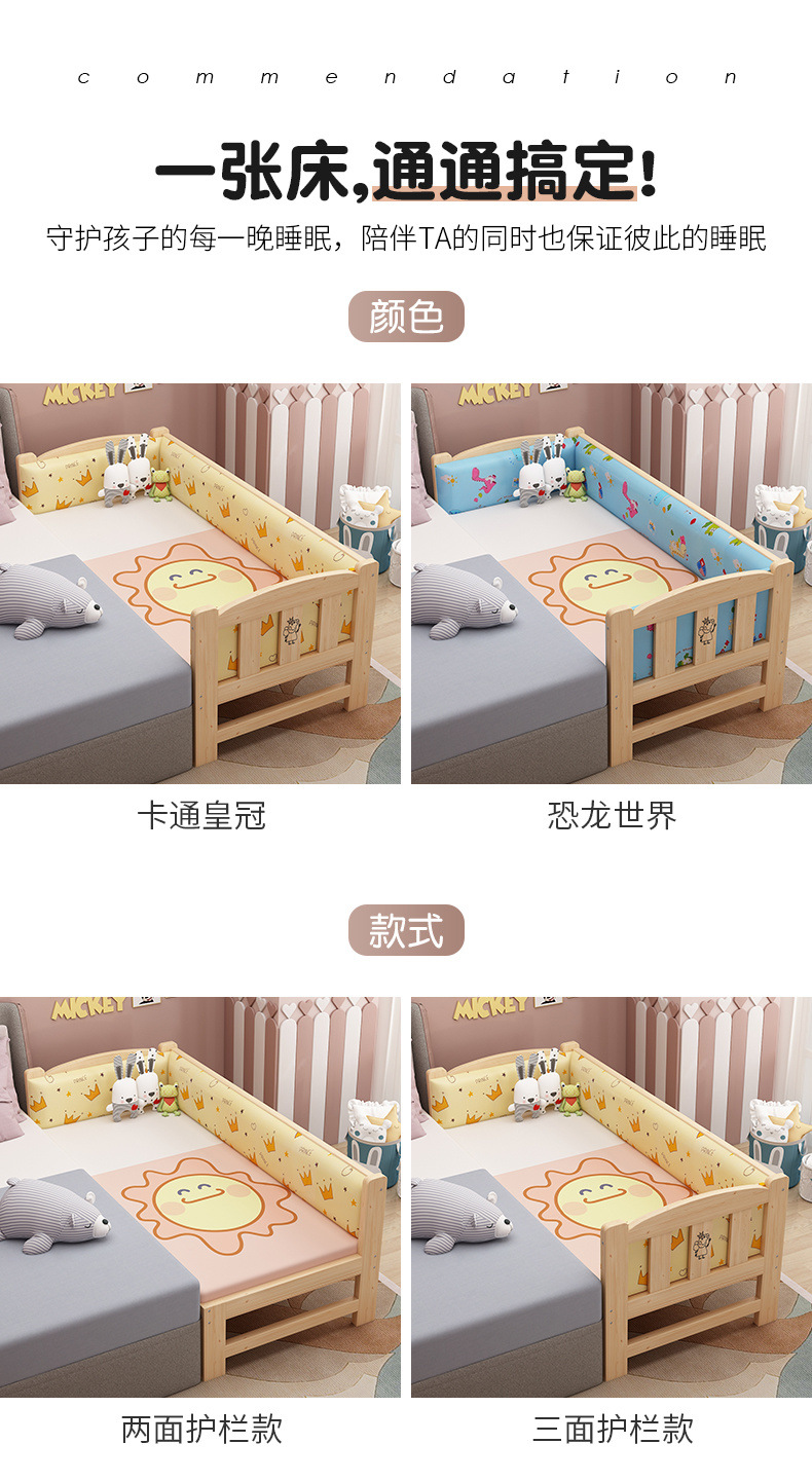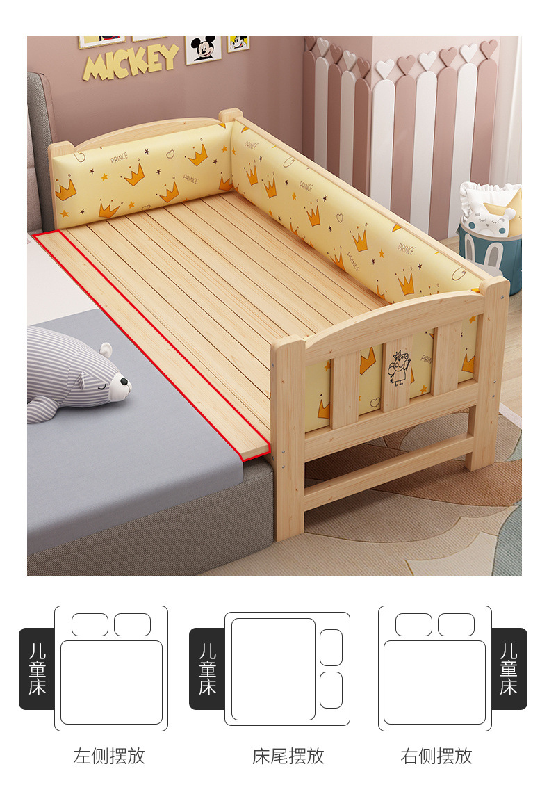 Tx Solid Wood Children s Bed with Guardrail Baby Adult Boys and Girls Princess Bed Single Bed Side Bed Widened and Spliced Large
