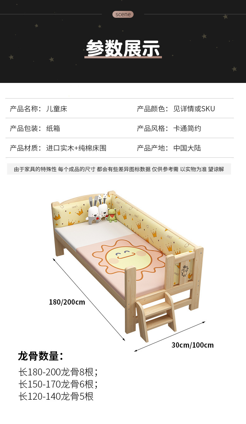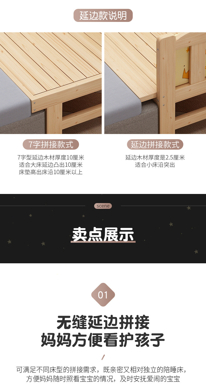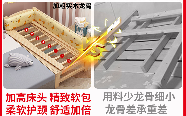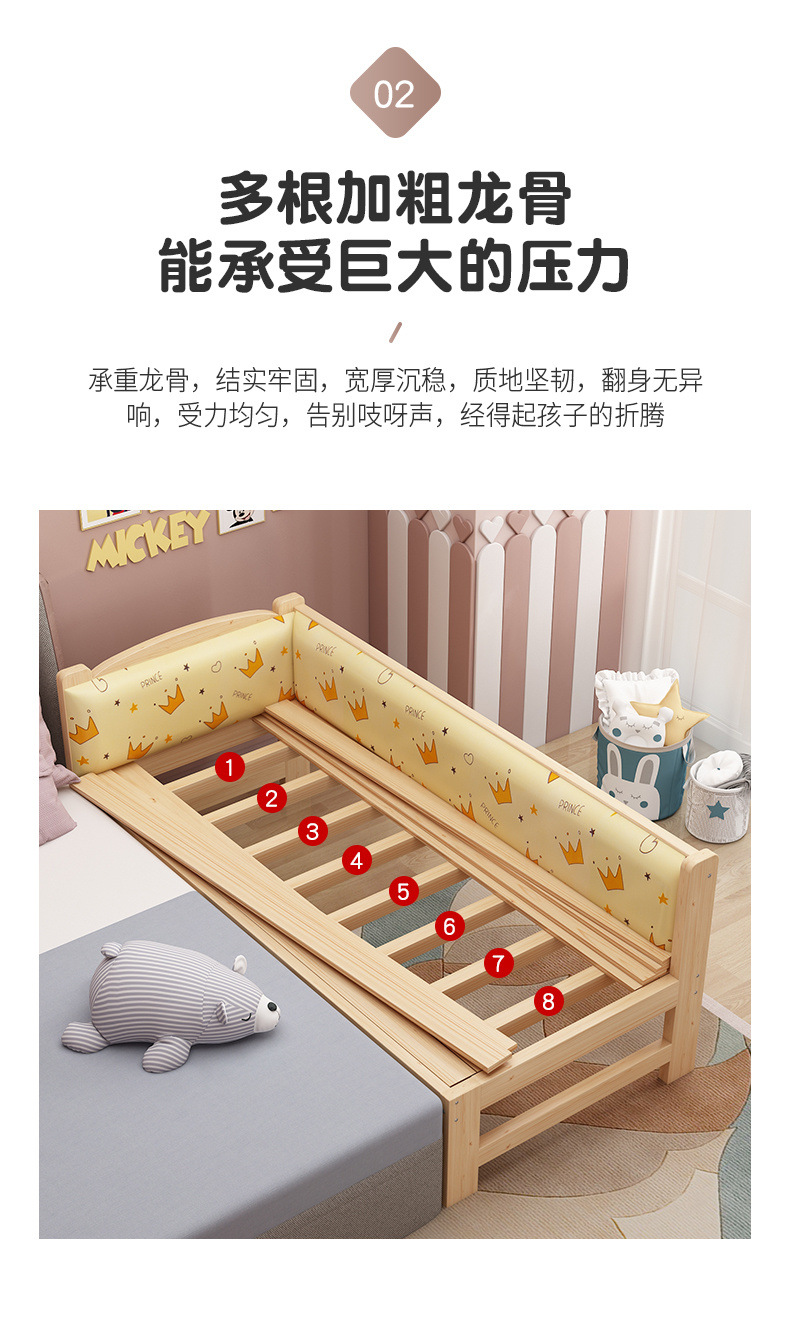 Tx Solid Wood Children s Bed with Guardrail Baby Adult Boys and Girls Princess Bed Single Bed Side Bed Widened and Spliced Large