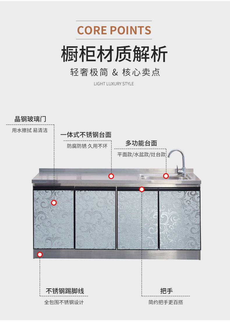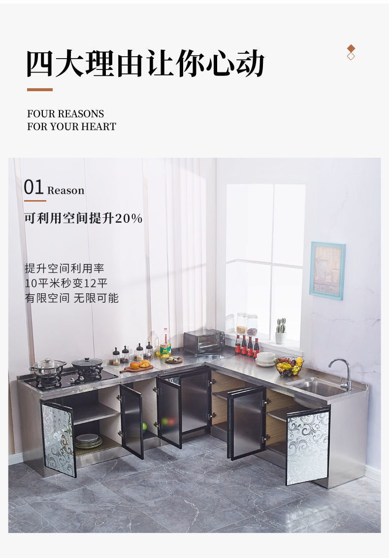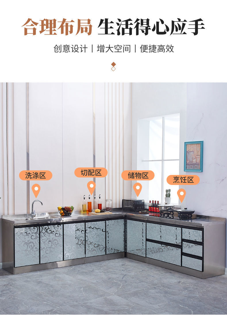 Tx Stainless Steel Kitchen Cabinet Simple Stove Cabinet Cabinet Integrated Rental House Assembly Household Economical Integral Kitchen Cabinet