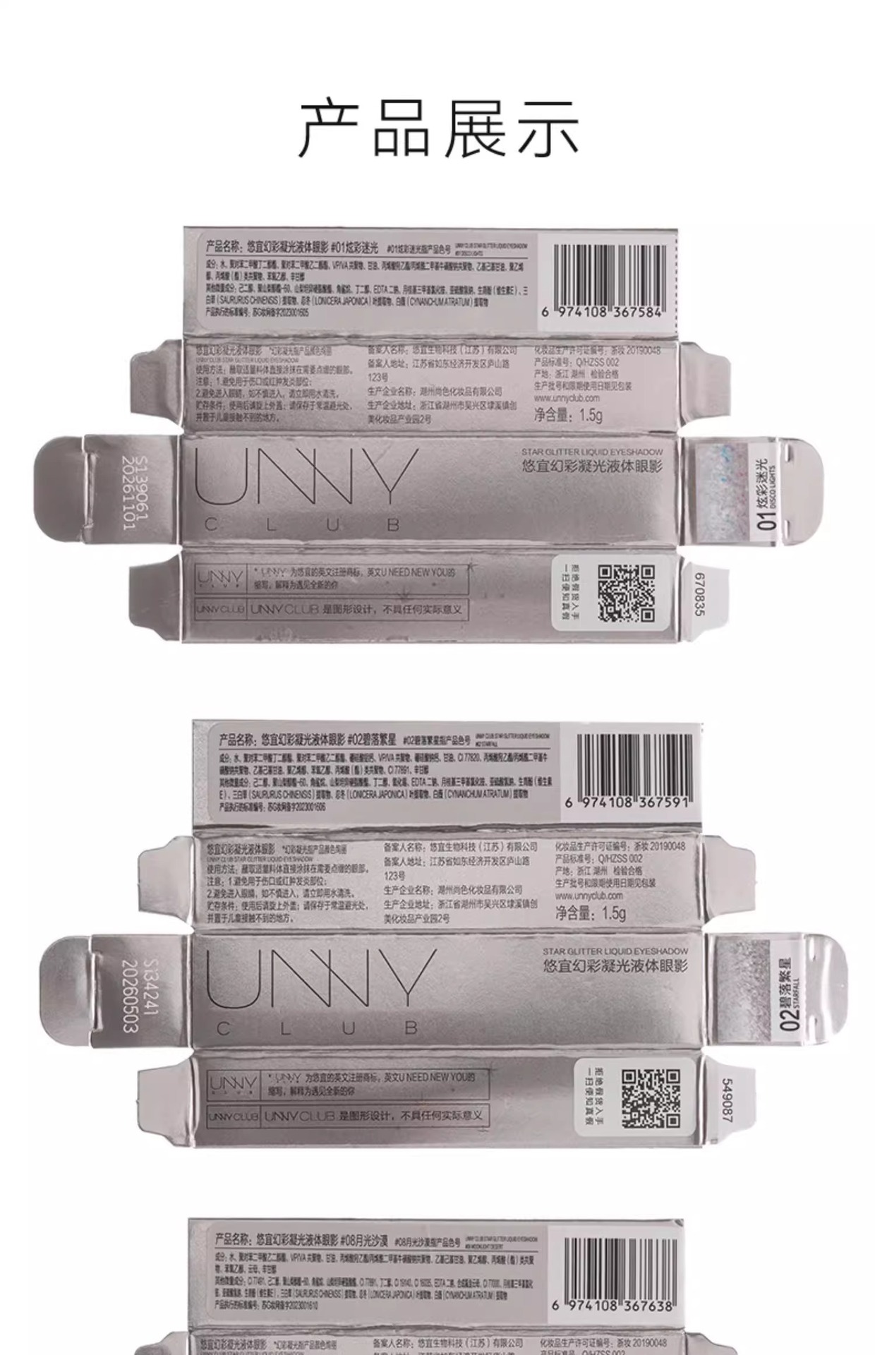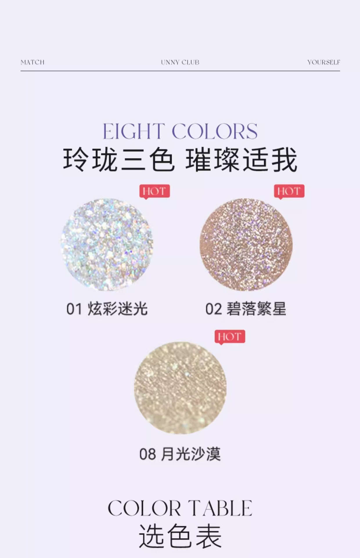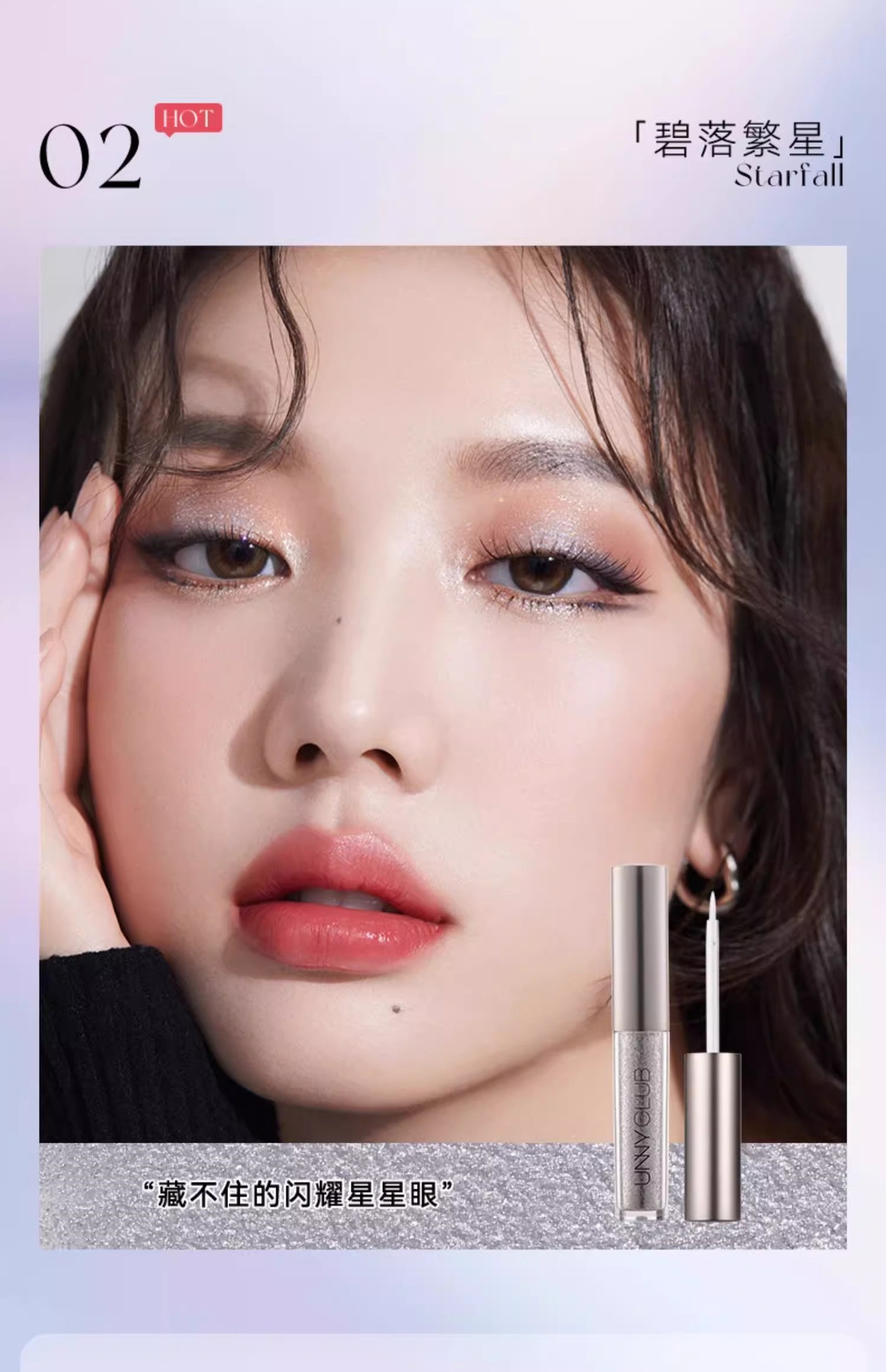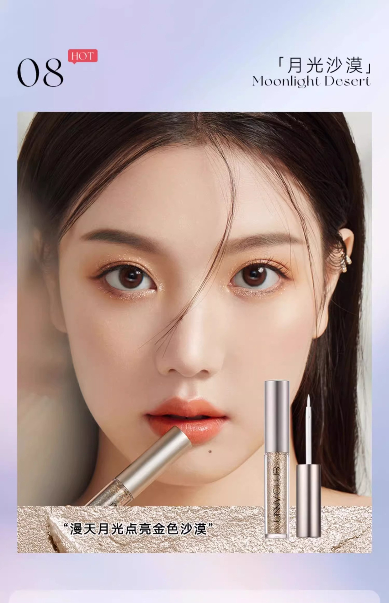 UNNY liquid eye shadow sequins glitter pearlescent tear makeup official flagship store waterproof sweat proof affordable student genuine