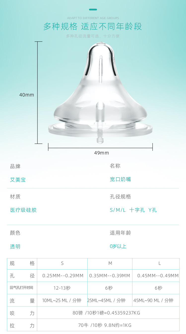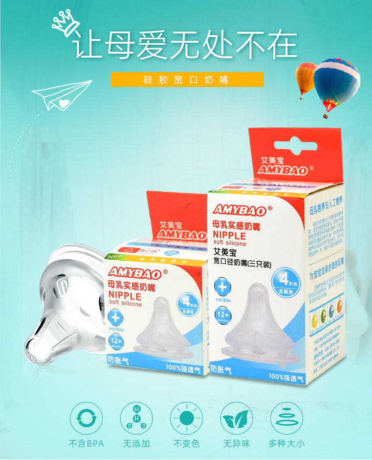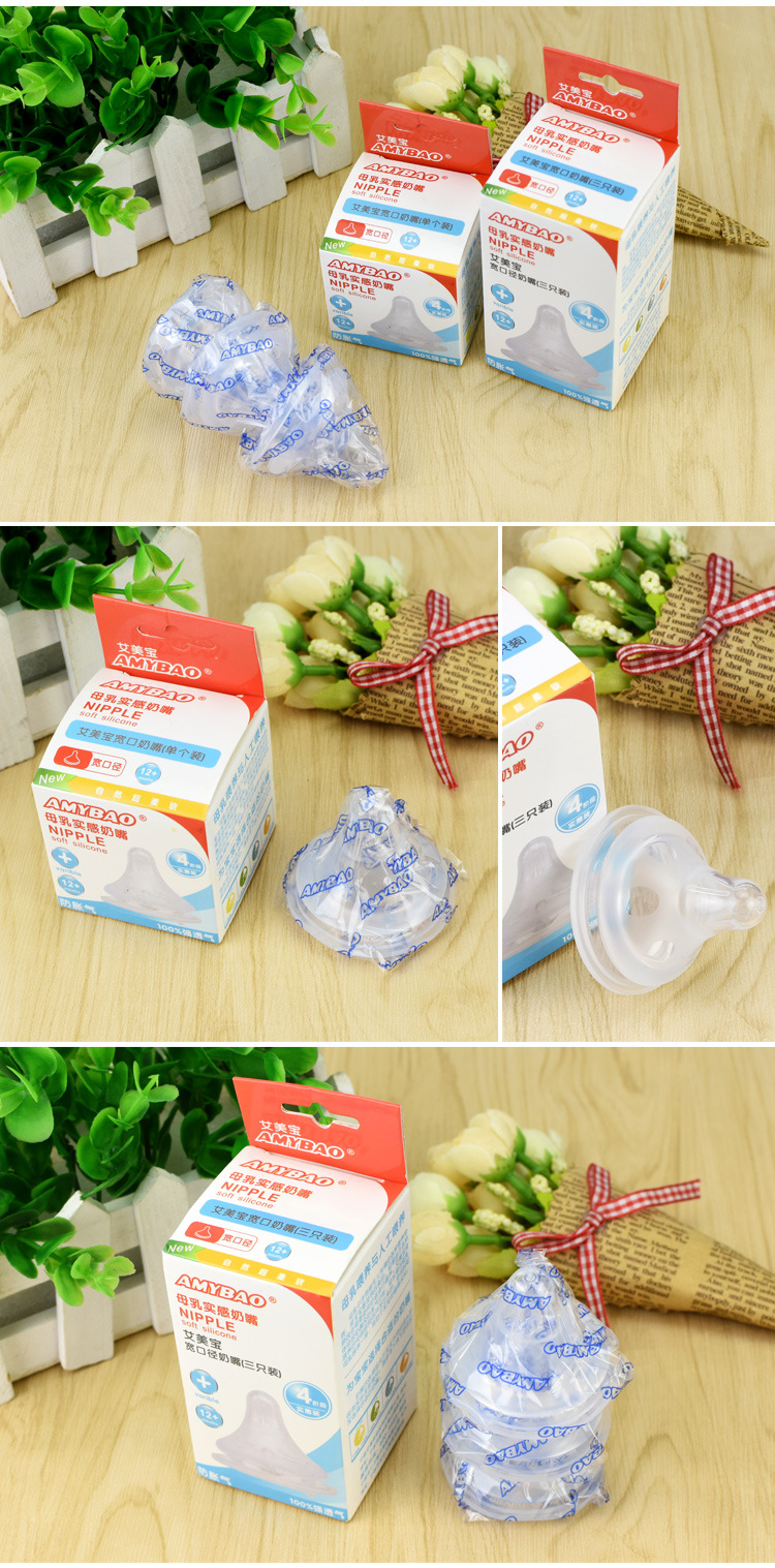 Universal Baby Bottle Nipple Wide Caliber Silicone Super Soft Baby Breast Milk Solid Sense Silicone Nipple Packaging