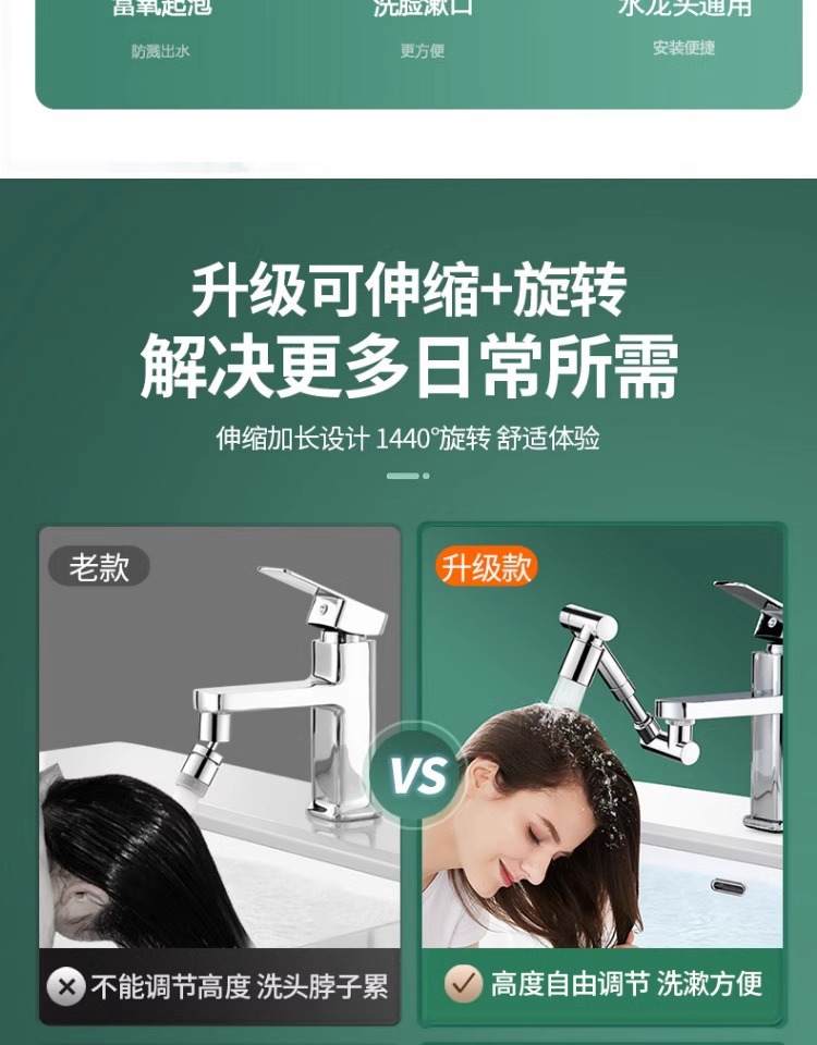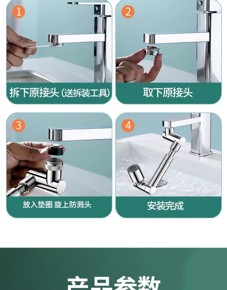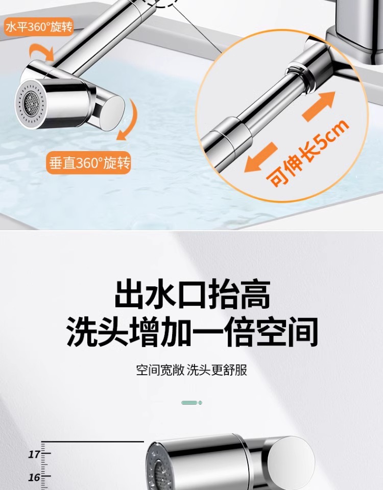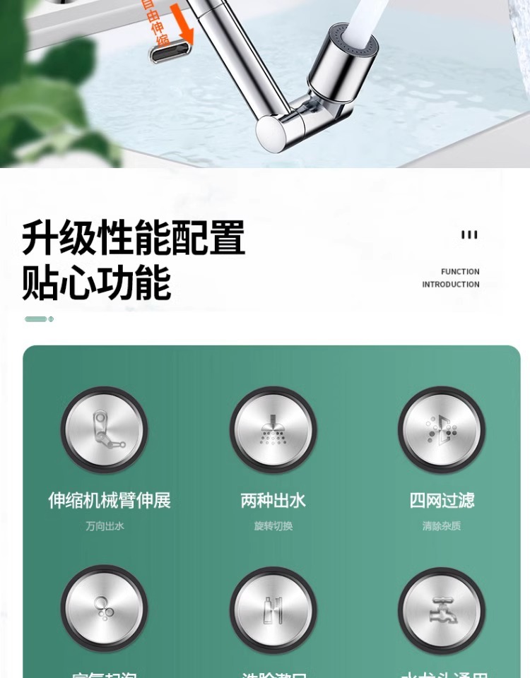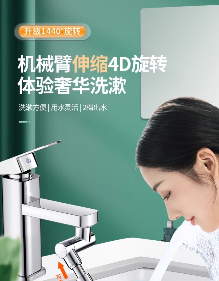 Universal Swivel Faucet Extension Mechanical Arm Anti splash Artifact Blistering Head Kitchen Special Telescopic Spout Set