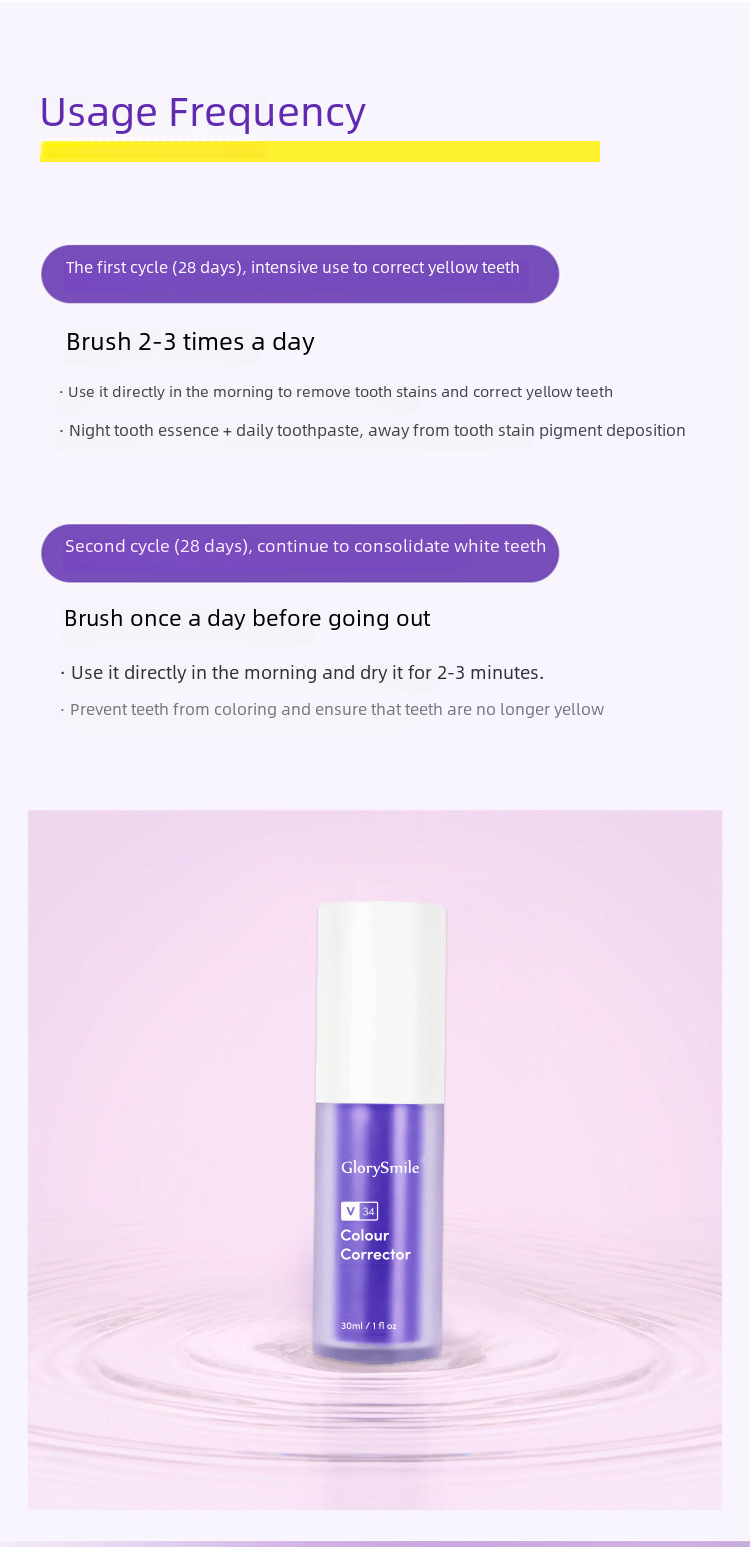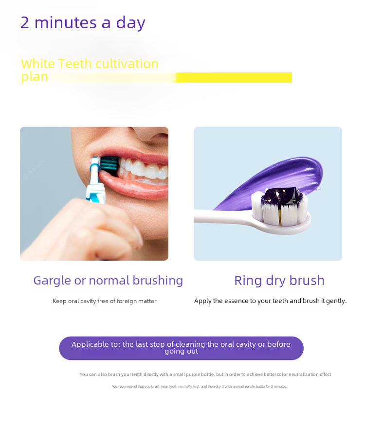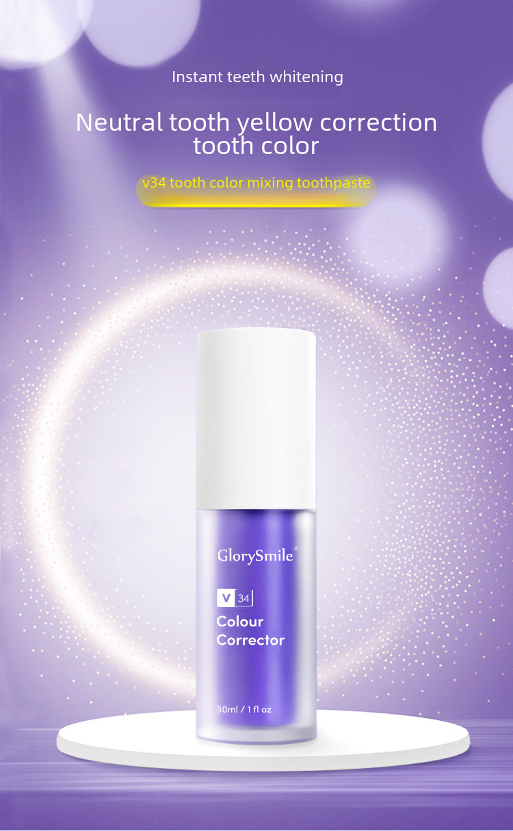 V34 teeth white essence purple mousse toothpaste teeth color essence to yellow teeth stains cross border wholesale