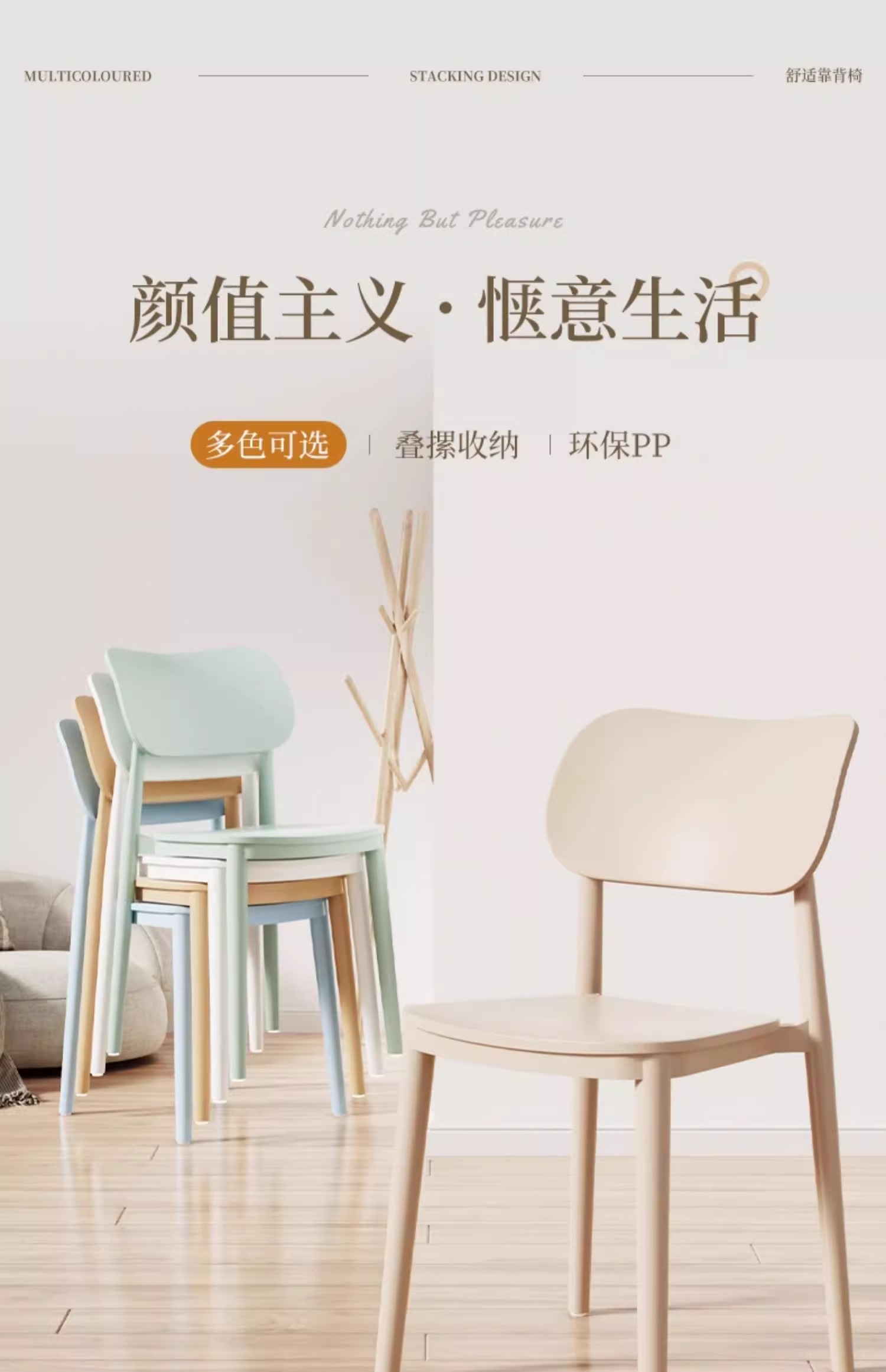 VQ5K backrest dining chair home Modern simple thickened long sitting comfortable plastic stool Nordic Internet celebrity commercial dining table