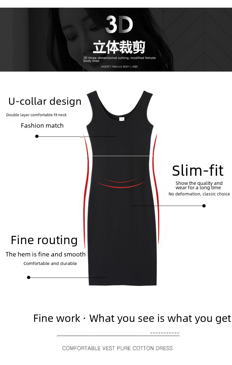 Vest Base Dress Long Slip Dress Large Size Women s Dress for Chubby Girls 2024 Summer Student Base Dress