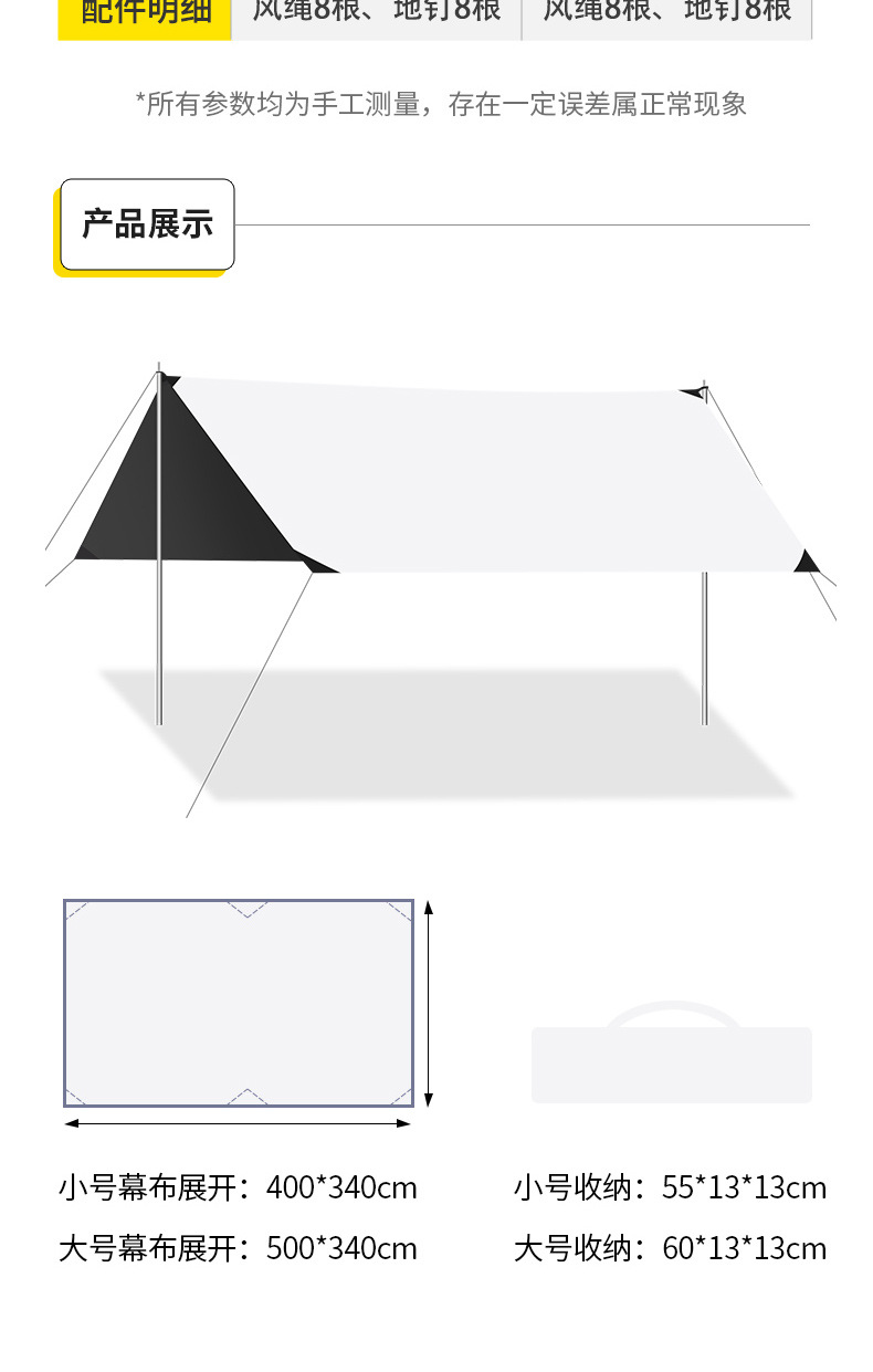 Vinyl canopy outdoor camping sunshade canopy table and chair five piece set equipment camping outing sun proof rain proof awning