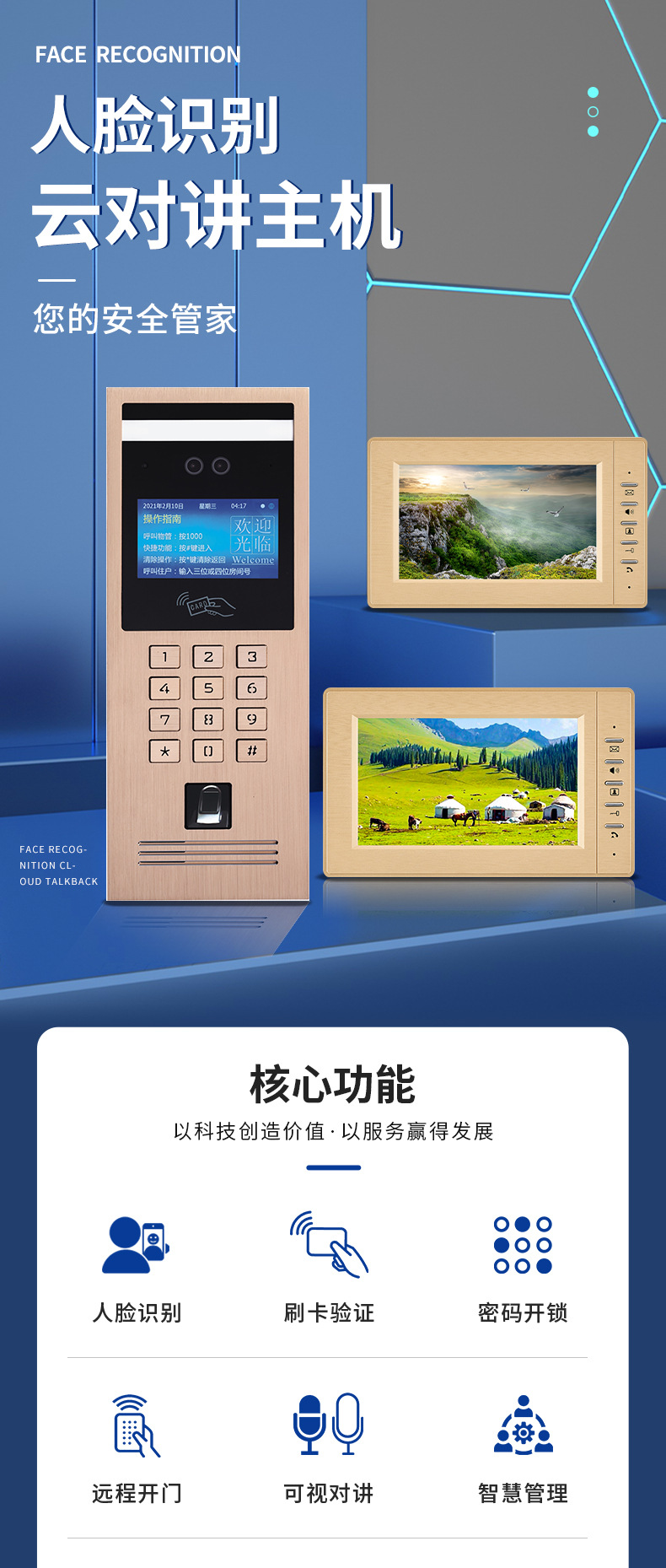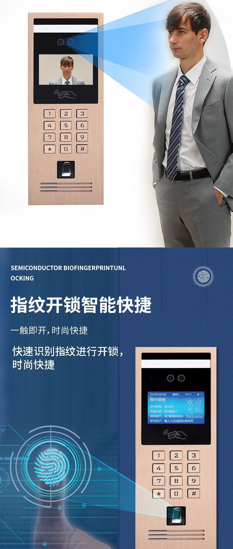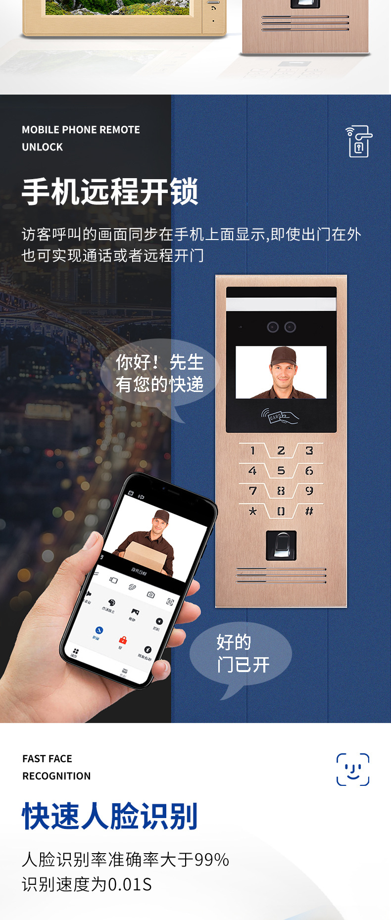 Visual intelligent voice building intercom fingerprint face recognition APP cloud system mobile phone remote real time monitoring