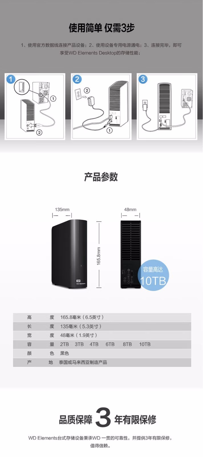 WD Western data computer desktop mobile hard disk new Elements Elements large capacity mechanical disk 3.5 inches