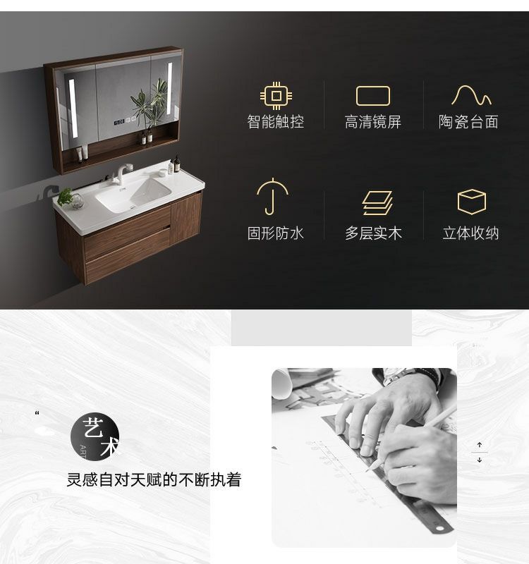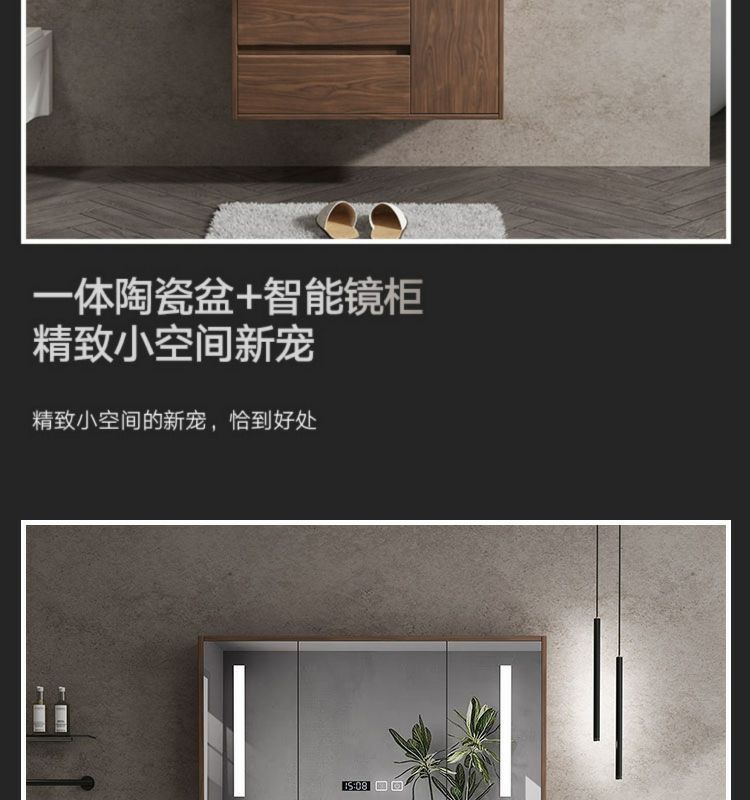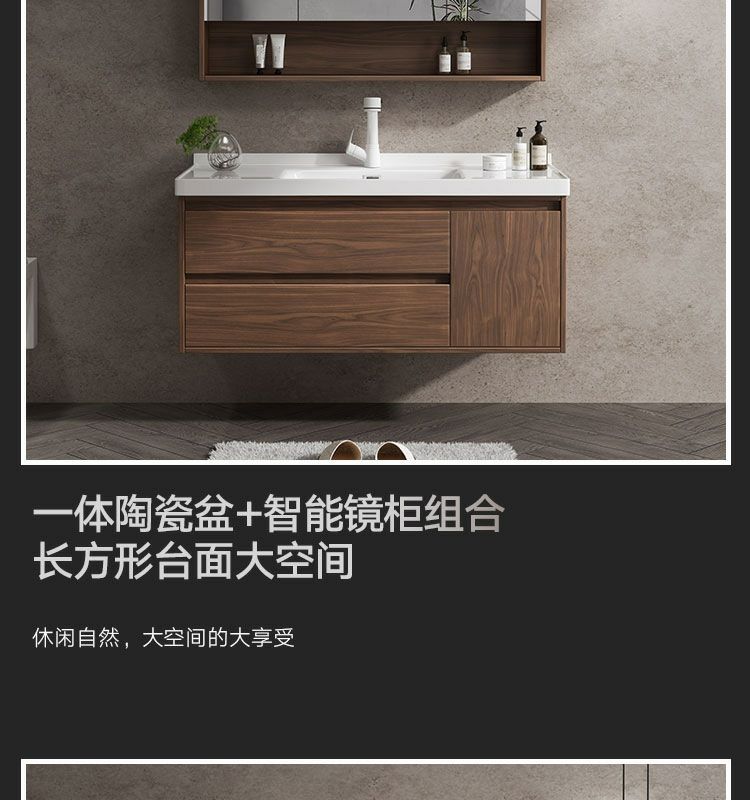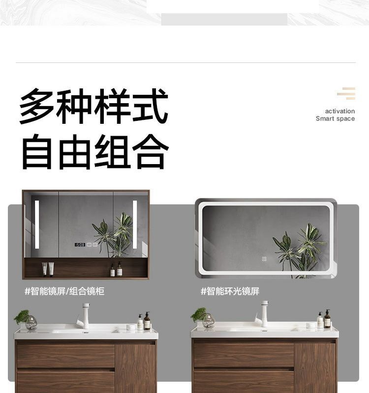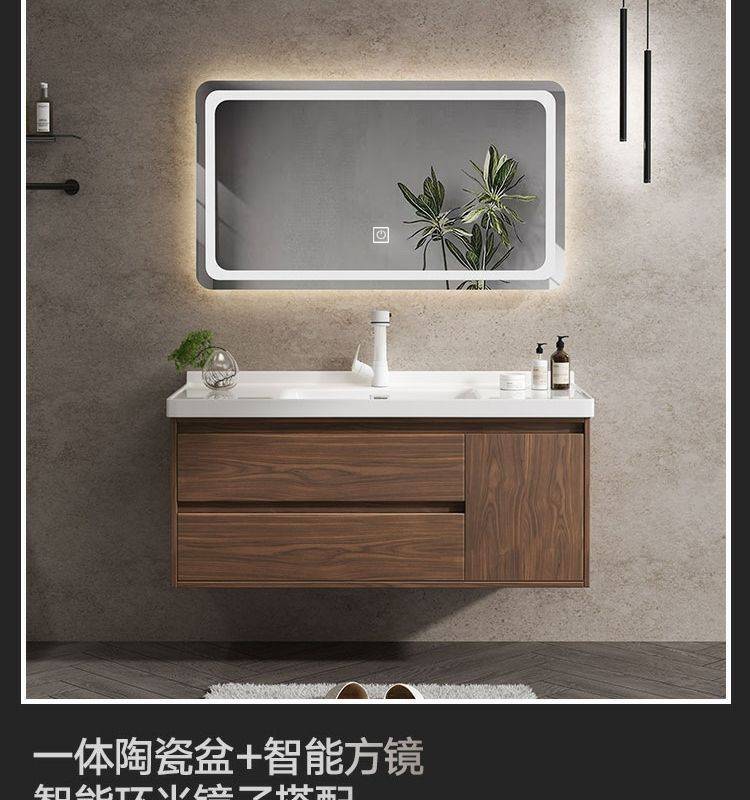 Walnut Color New Chinese Bathroom Cabinet Wood Grain Color Bathroom Cabinet Bathroom Cabinet Combination Intelligent Modern Bathroom Integrated