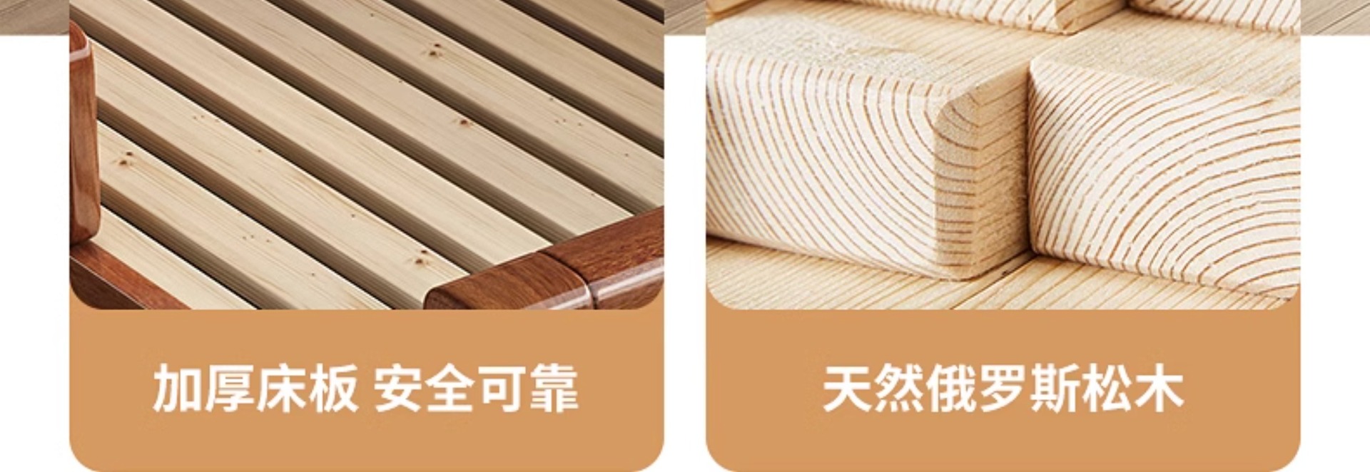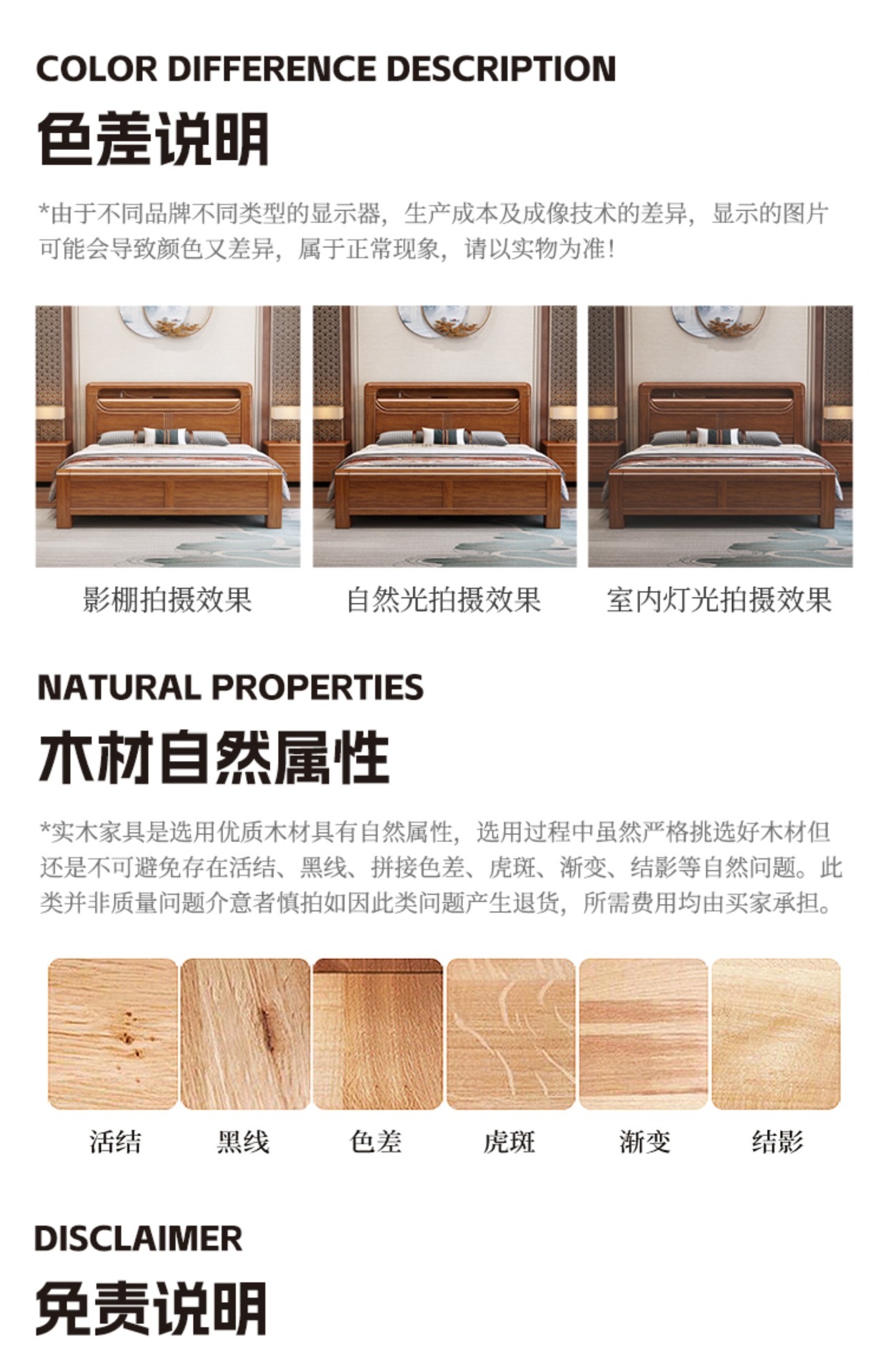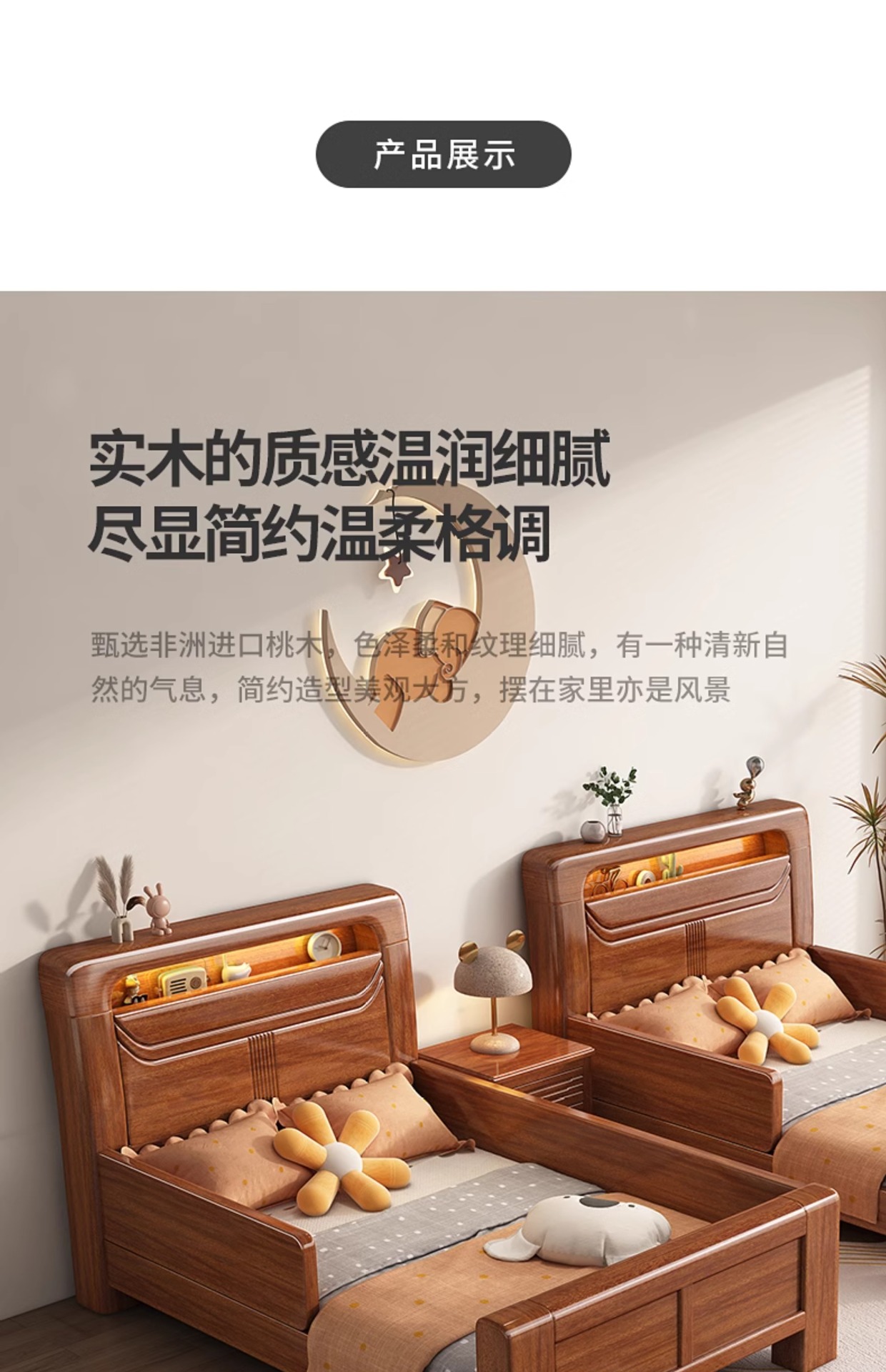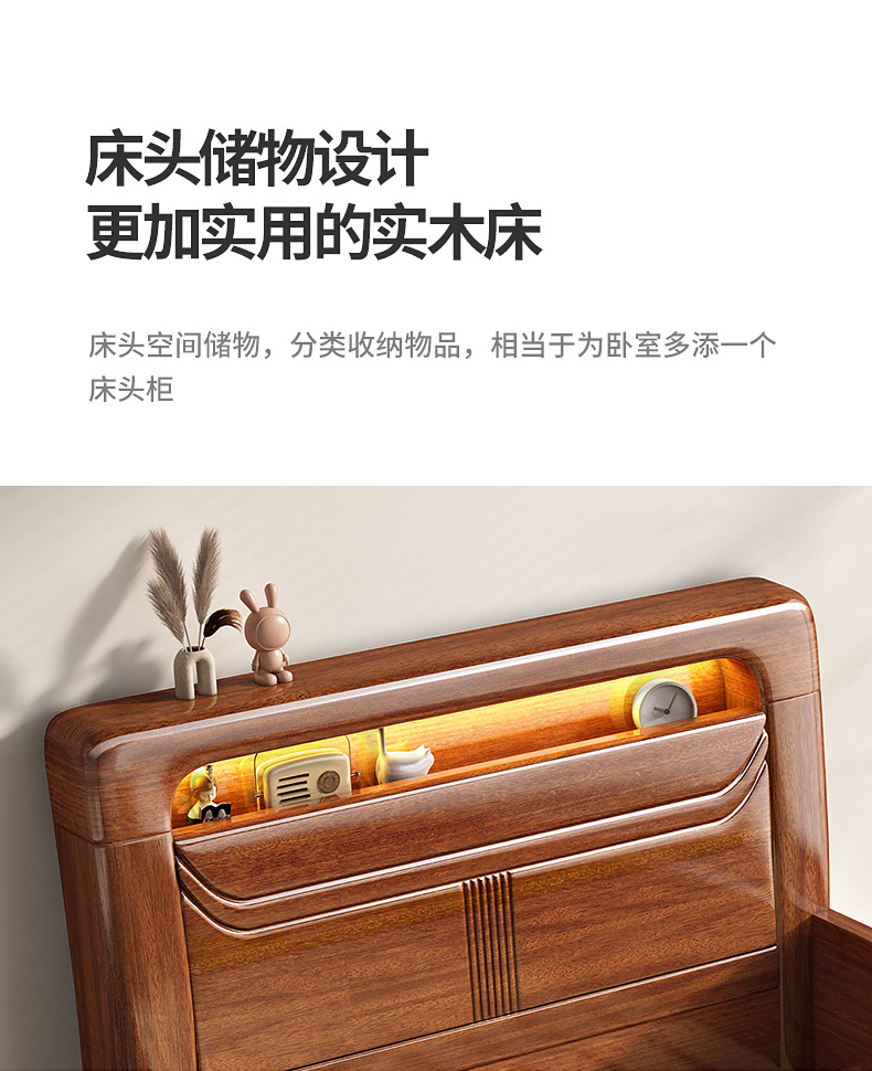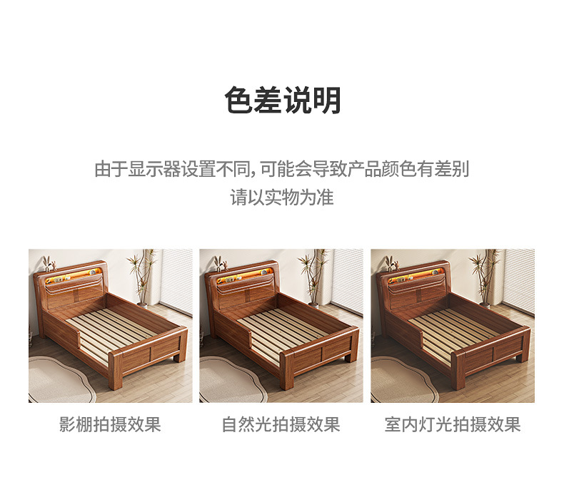 - [Walnut] Solid Wood Bed (Upgrade Warm Light Double Helper)