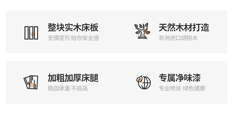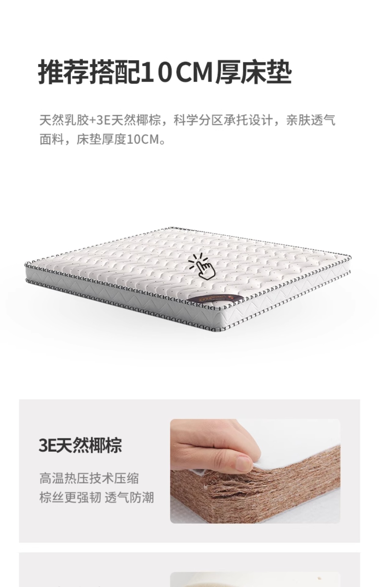 - [walnut] solid wood bed 10CM coconut palm mattress (upgraded warm light double support bar)