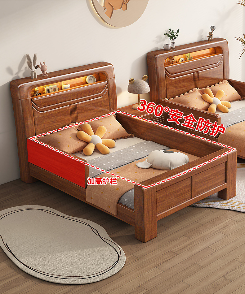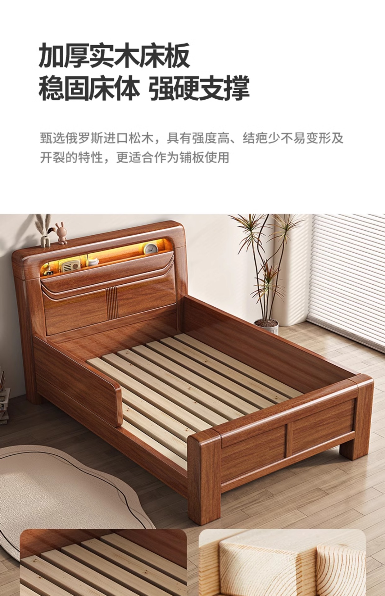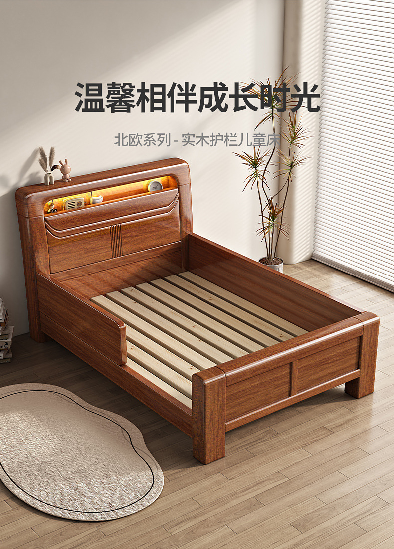 Walnut solid wood children s bed thickened guardrail boys and girls factory direct 1.5 meters small apartment 1.2 meters single bed