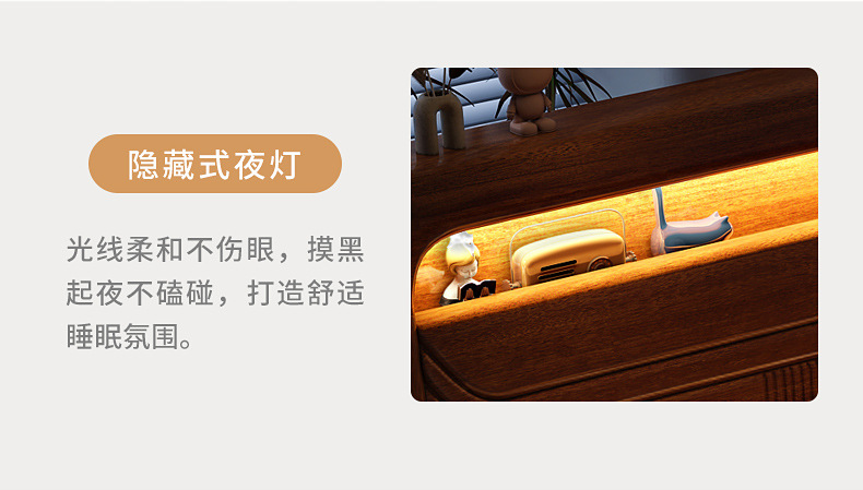 - [walnut] solid wood bed bedside table (upgrade warm light double help block)