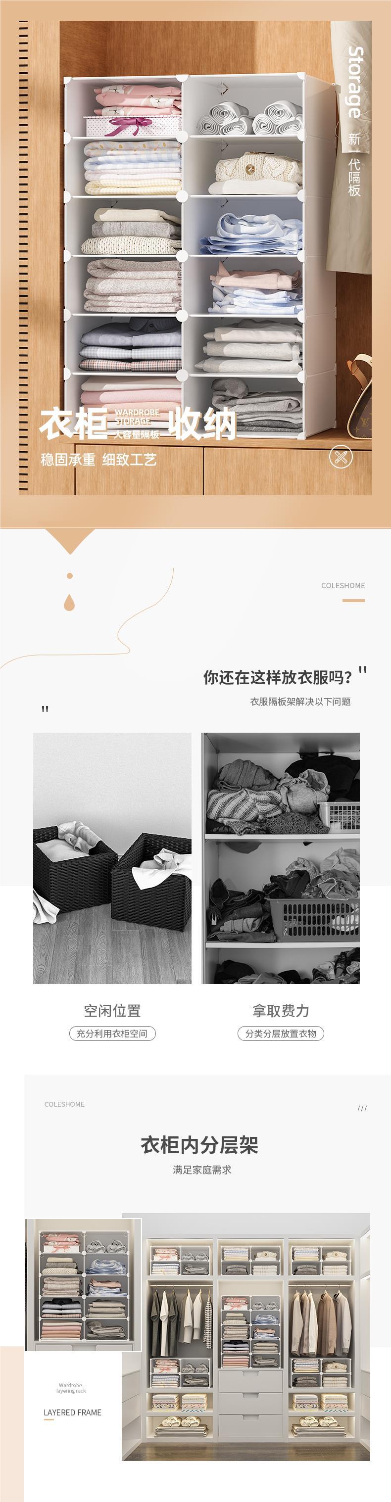 Wardrobe layered partition storage room storage artifact clothing bedroom combination household cabinet shelf load-bearing