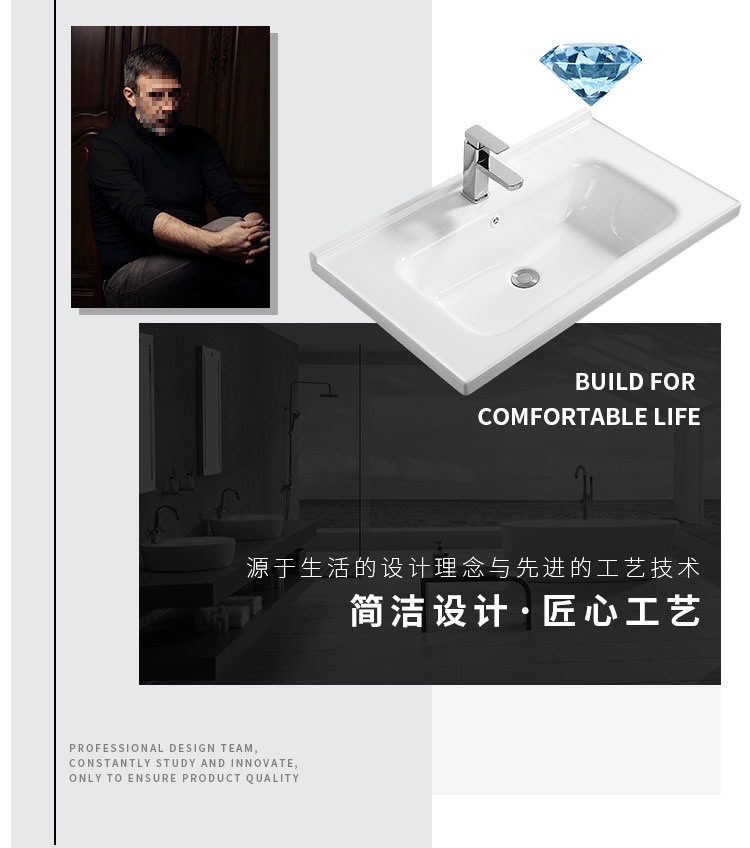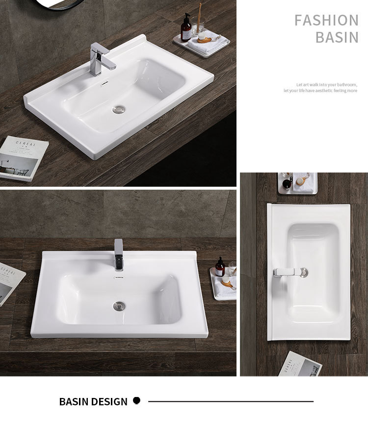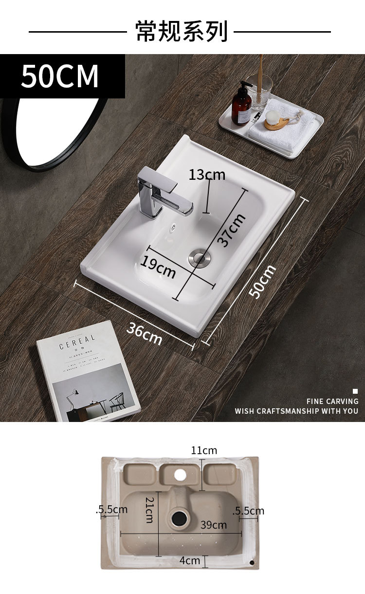 Wash basin single basin household semi embedded counter basin wash basin bathroom cabinet basin wash basin ceramic table top integrated