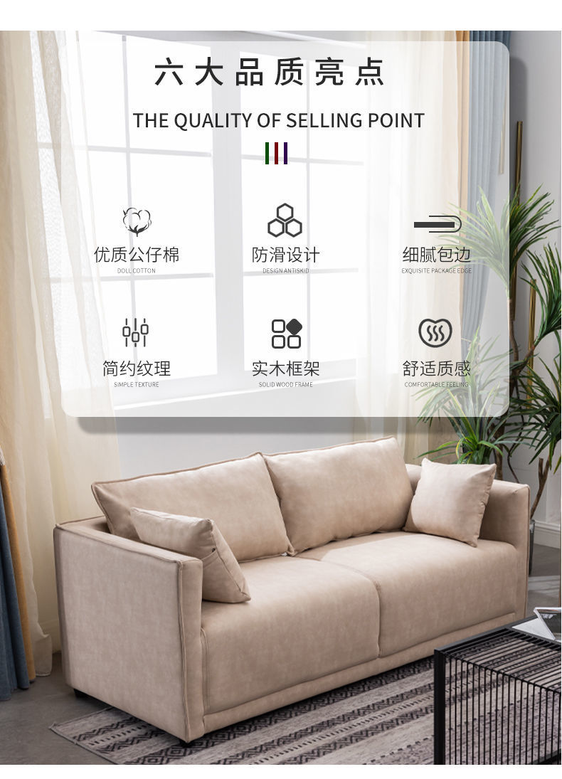 Washing free Technology Cloth Sofa Living Room Small Apartment Double Three person Rental Room Household Clothing Store Commercial