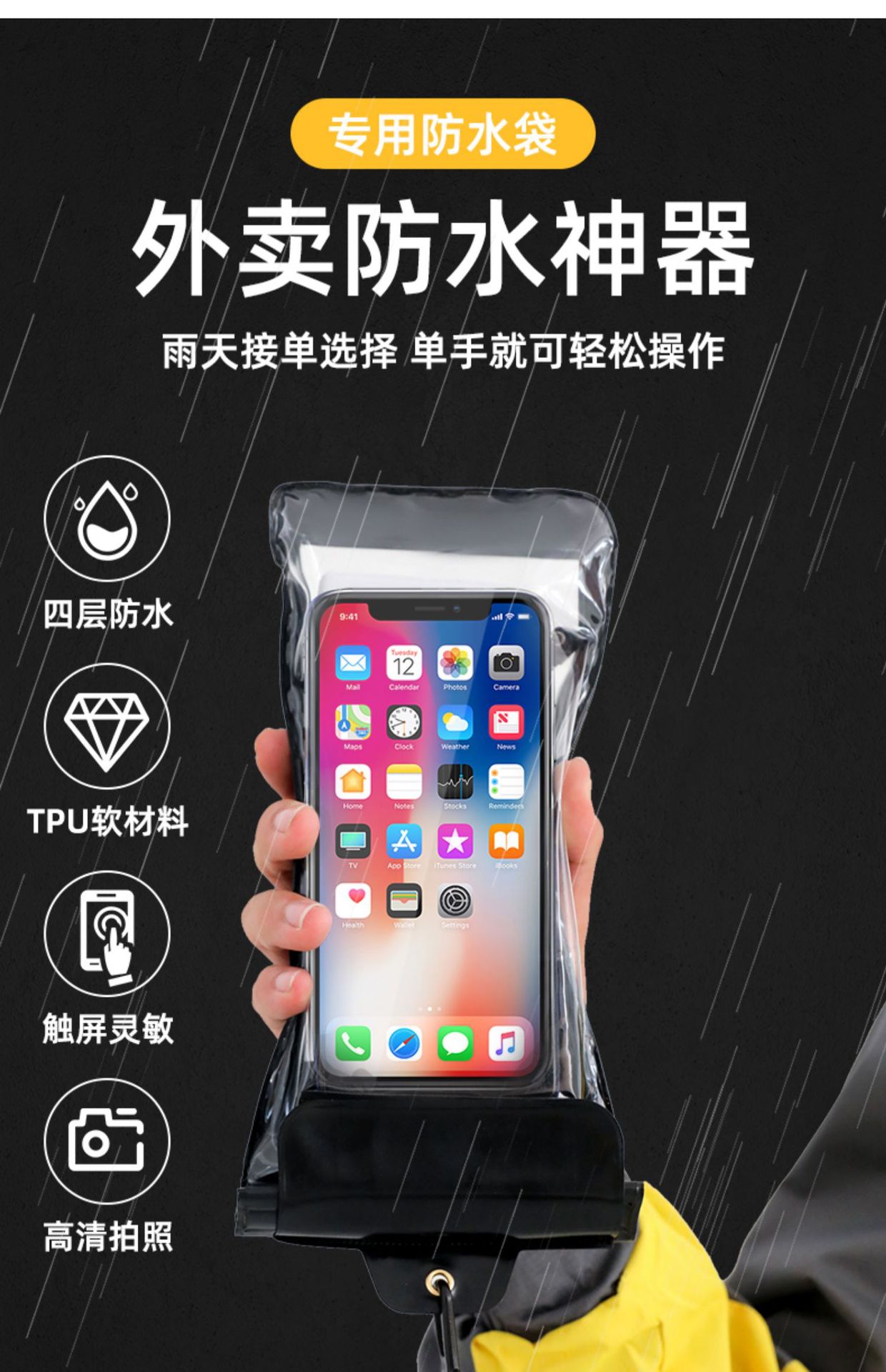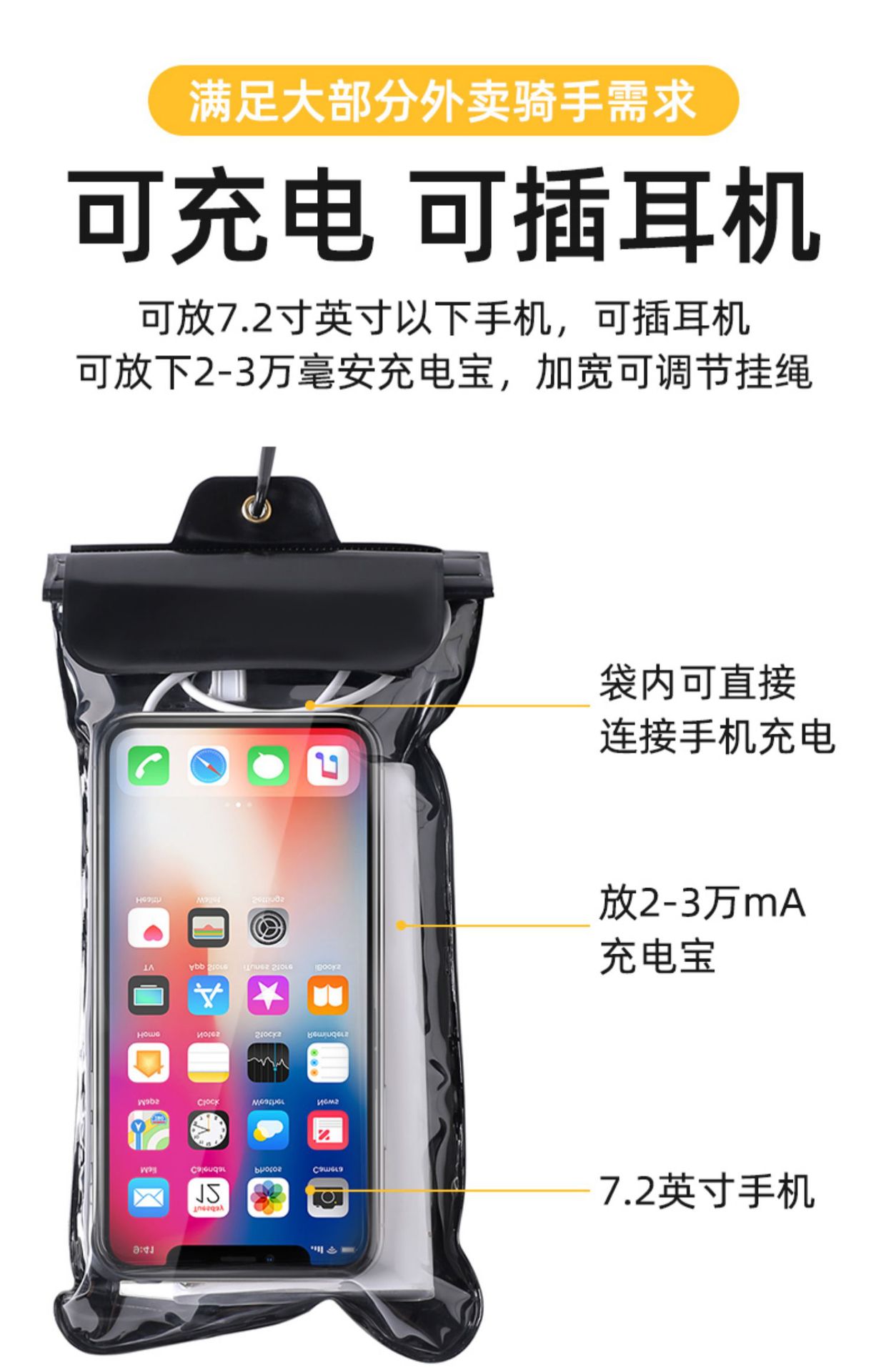 Waterproof Bag Mobile Phone Touchscreen Floatable Takeaway Rider Waterproof Bag Swimming Hot Spring Drifting Photoshoot Diving Cover