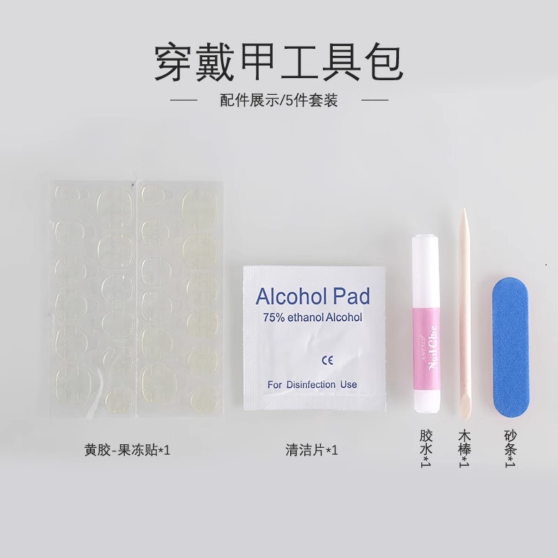 - Foot transparent packaging five-piece set (wooden stick + rubbing strip +24 Jelly Glue + glue + alcohol cotton sheet)