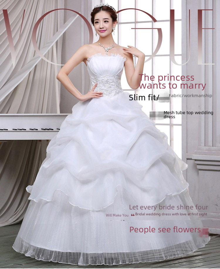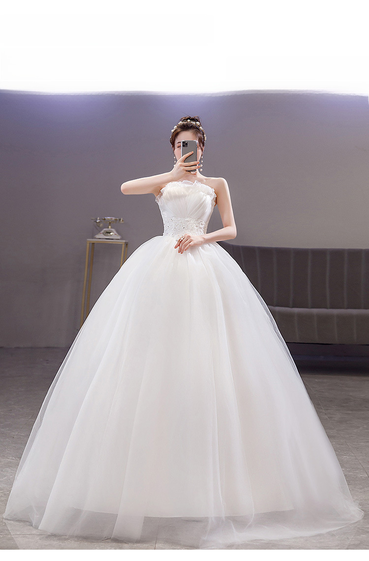 Wedding Dress White Floor length Bride Korean Style Fashion Strap Tube Top 2023 New Style Studio Simple Eugen Wedding Dress