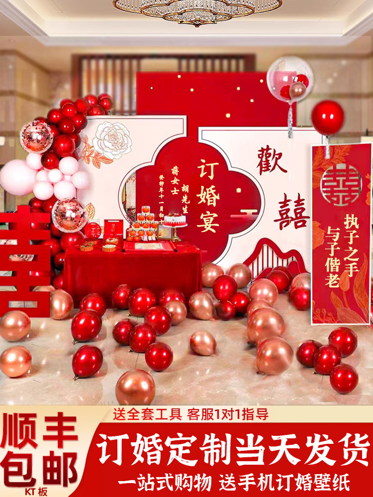 Wedding banquet decoration 2024 background wall kt board engagement decoration table simple high end feeling supplies package