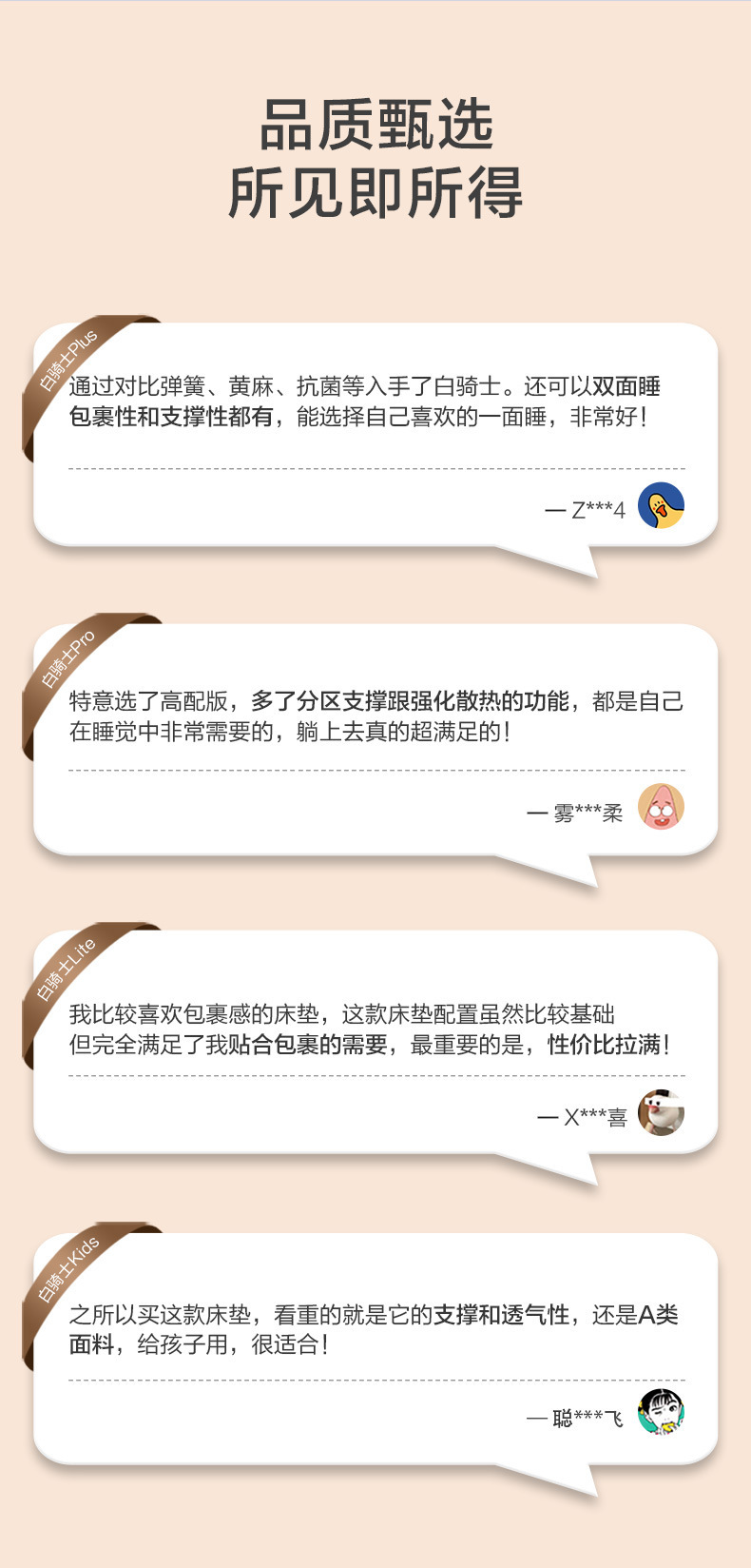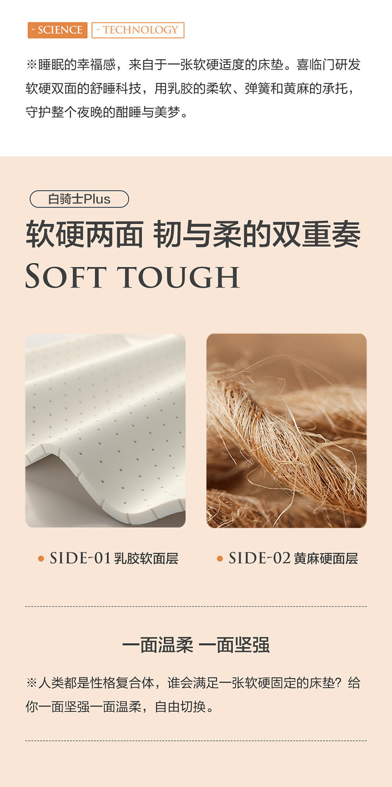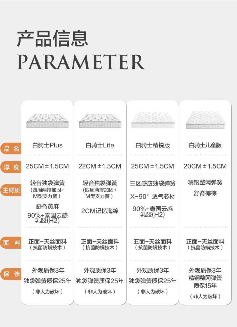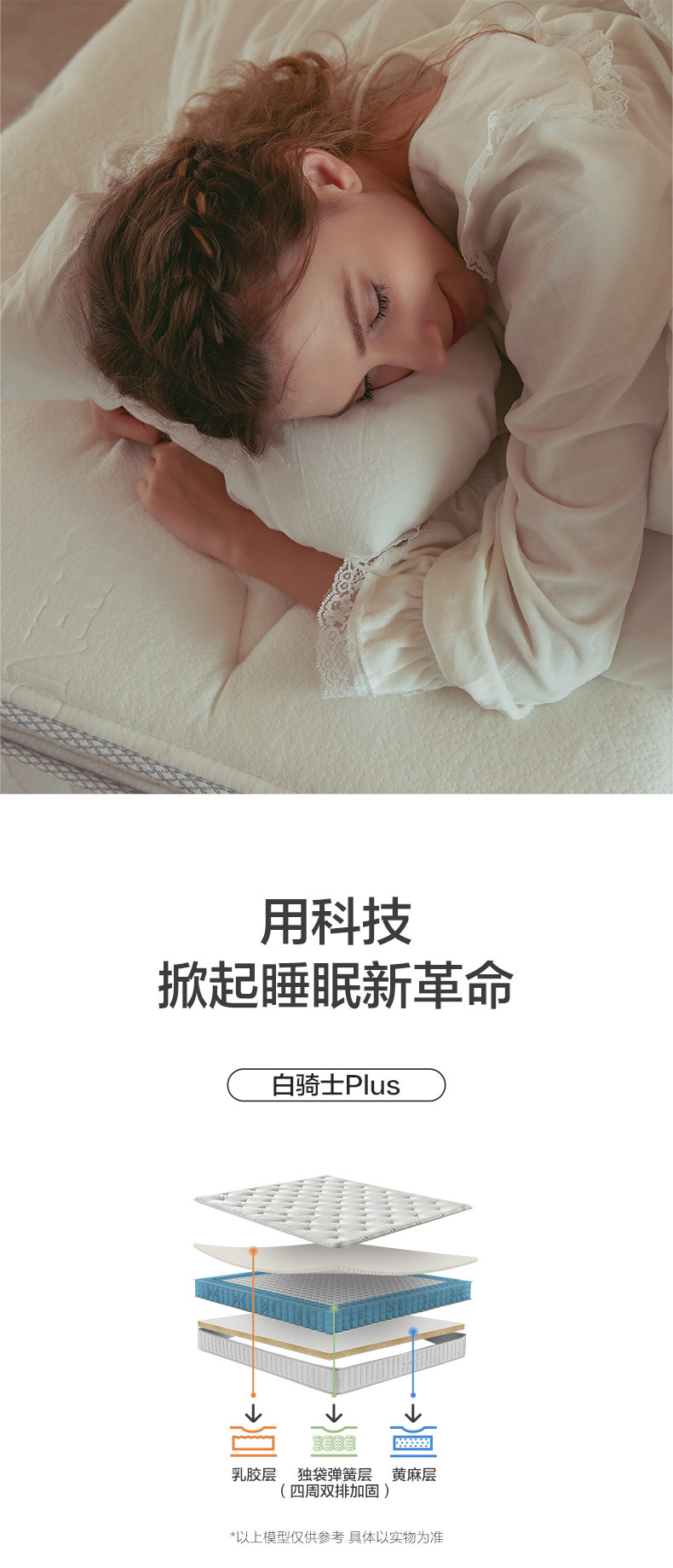 - White Knight Pure Edition 25cm four-side reinforcement upgrade [light tone single bag Spring +90% Thailand cloud sense latex (H2)+ 3D jute]]
