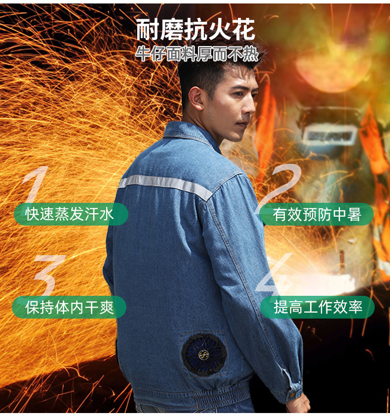 Welder fan clothing men s wear resistant cowboy labor protection overalls summer tooling jacket welding cooling air conditioning clothing wholesale