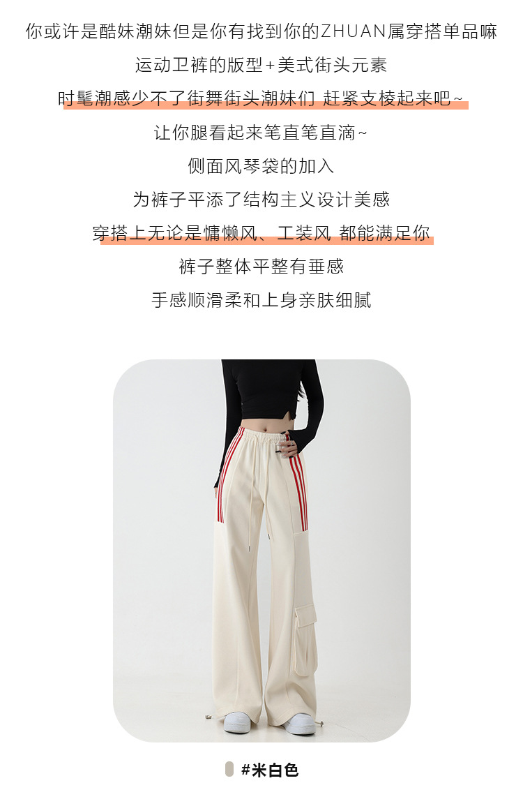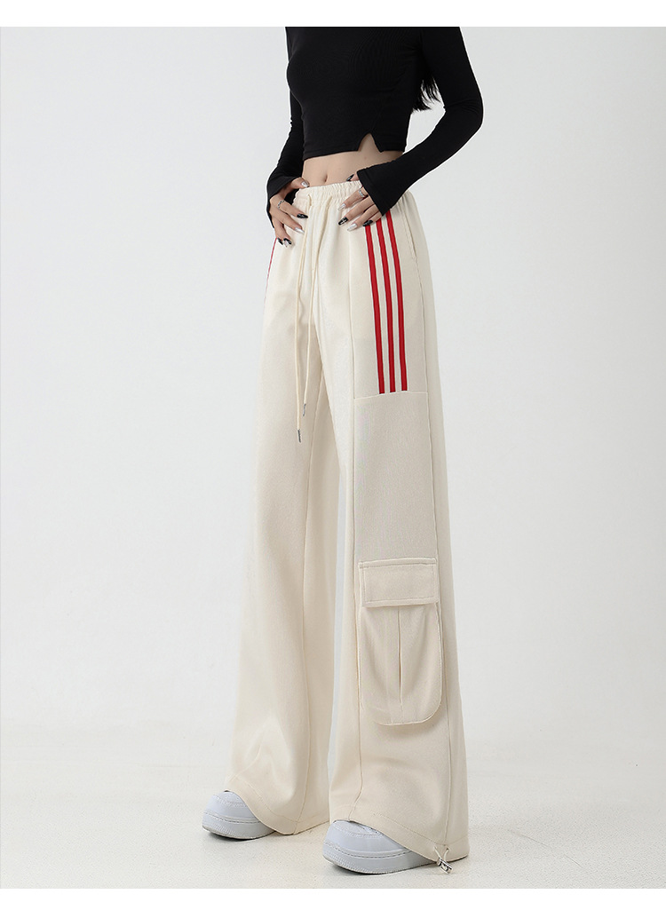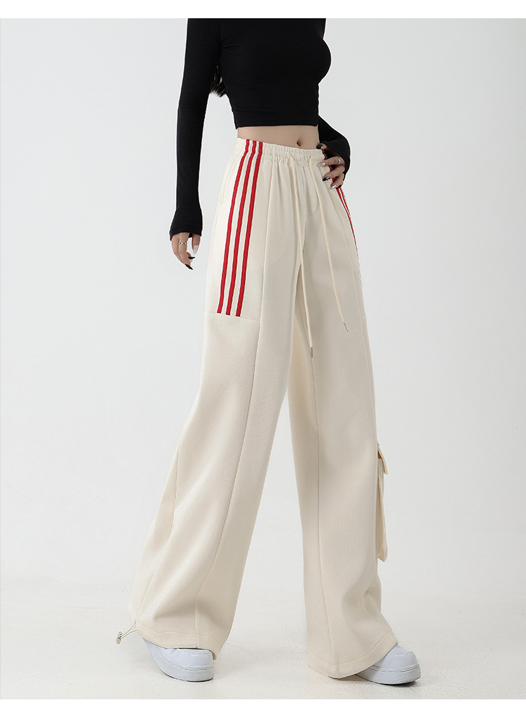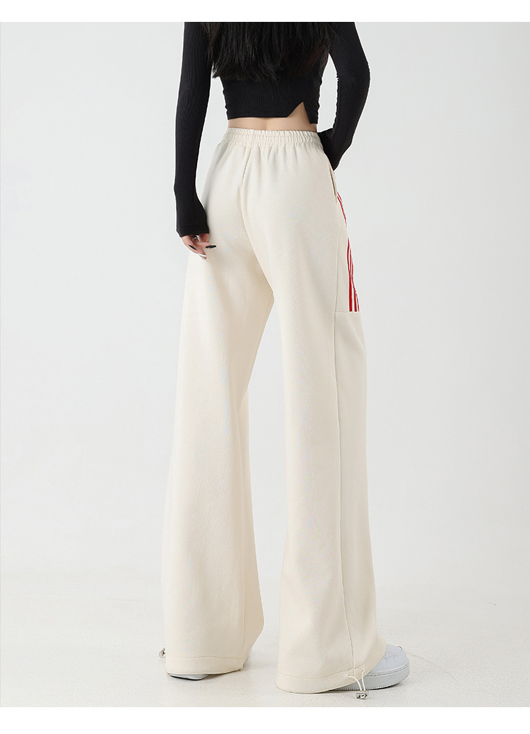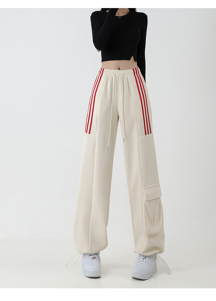 White American straight sports casual pants women s spring high waist loose plus size chubby girl slimming wide leg ankle tied sweatpants