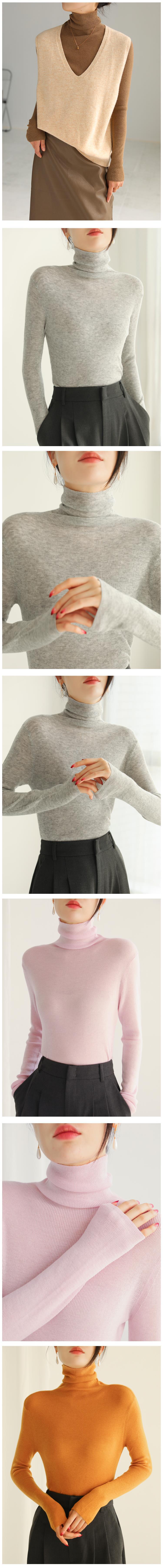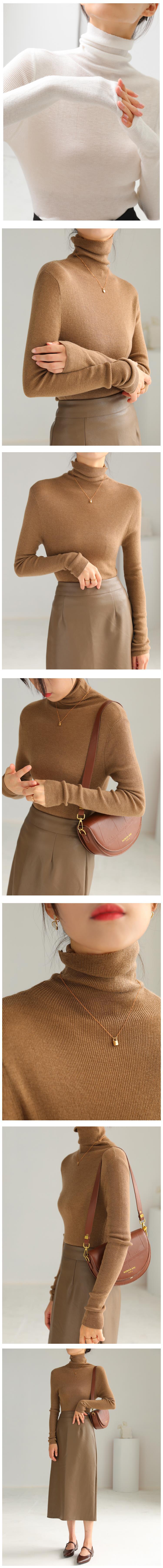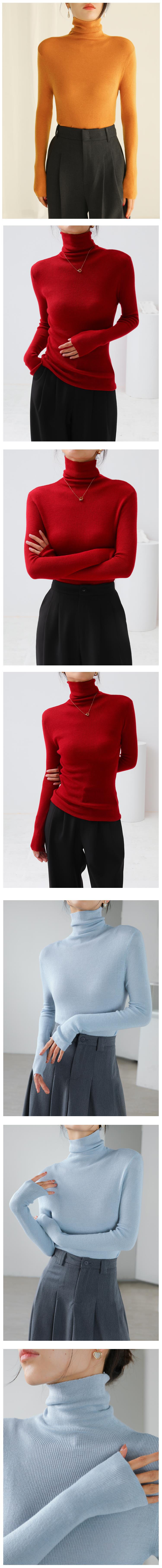 White Long Sleeved Sheep Wool Pile Collar Knitted Sweater Women s Early Autumn Pile Wear Thin Slim Fit Inner Base Sweater Turtleneck