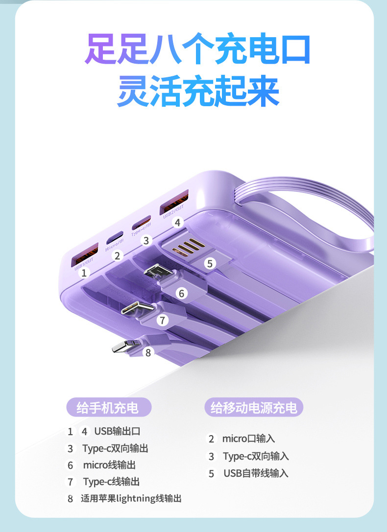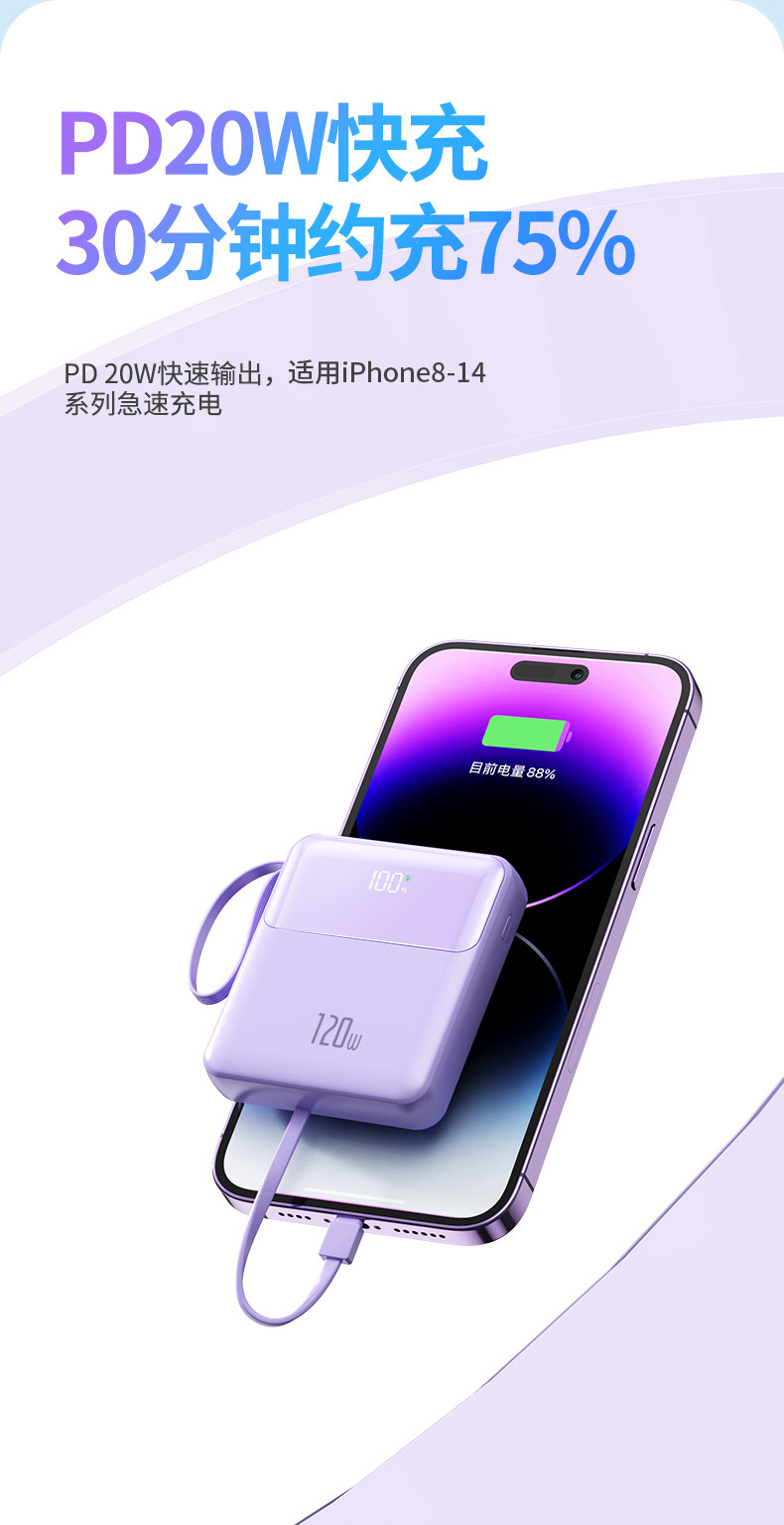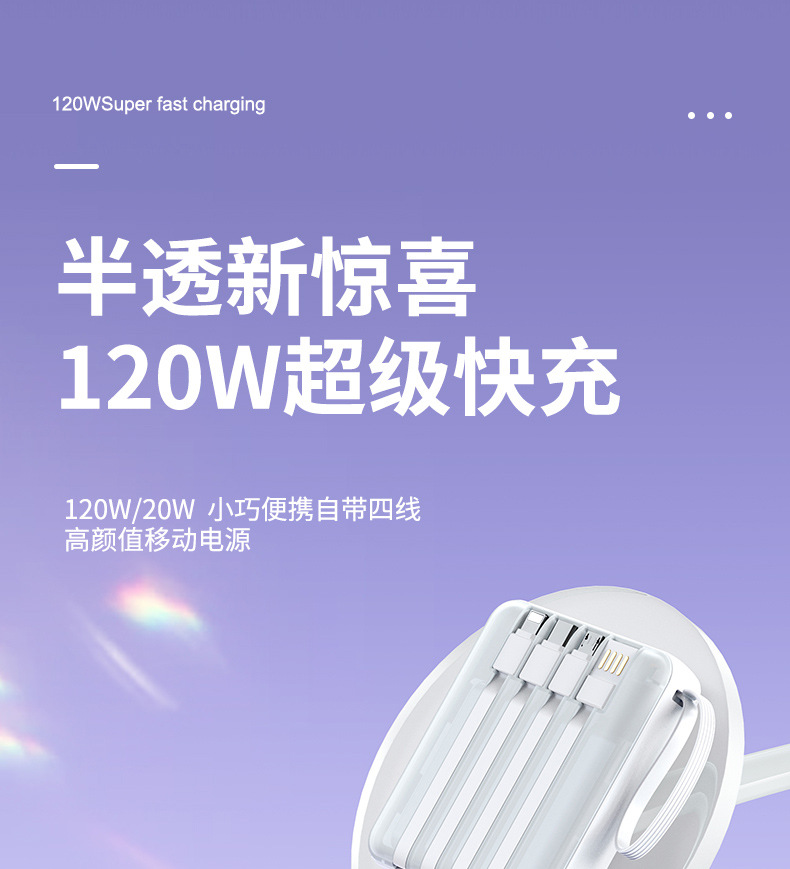 Wholesale New comes with four wire 20000 mA mobile power 120W fast charge mobile phone charging treasure small gift