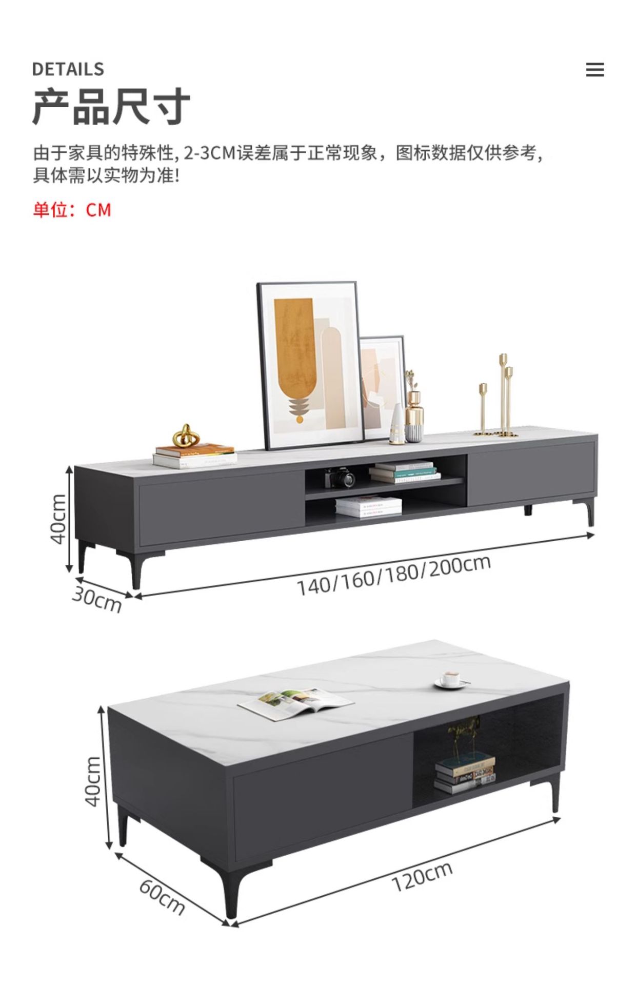 - 1.4 meters TV cabinet 1.2 meters tea table starry sky gray