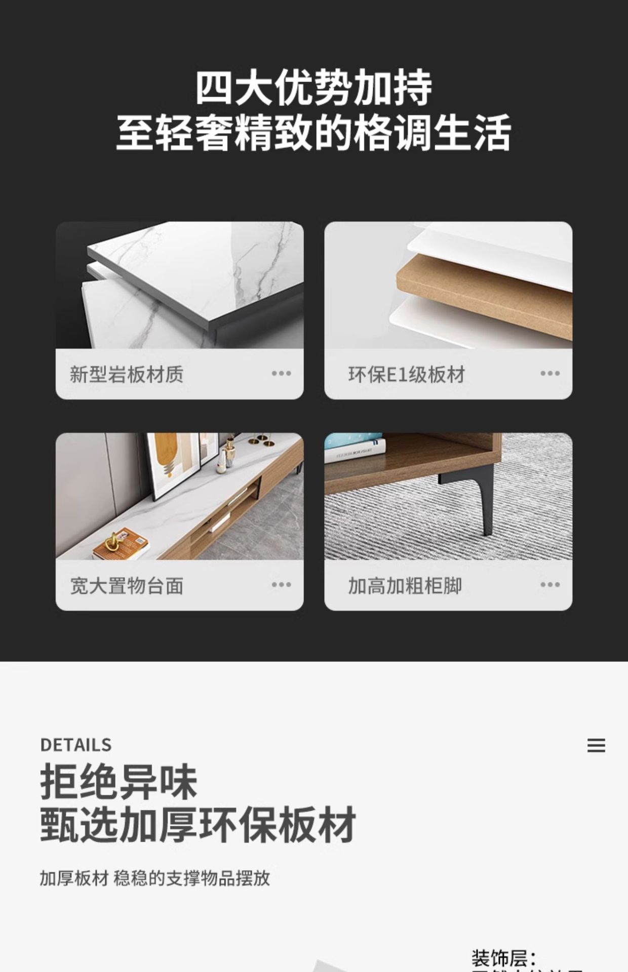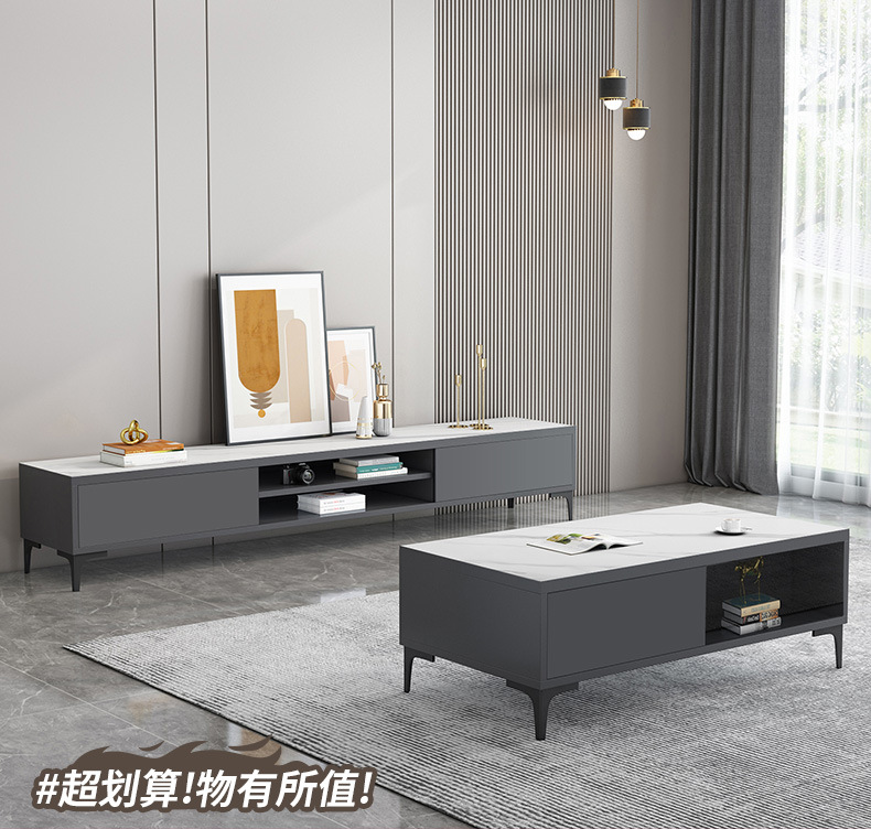 - 2.0 meters TV cabinet 1.2 meters tea table starry sky gray