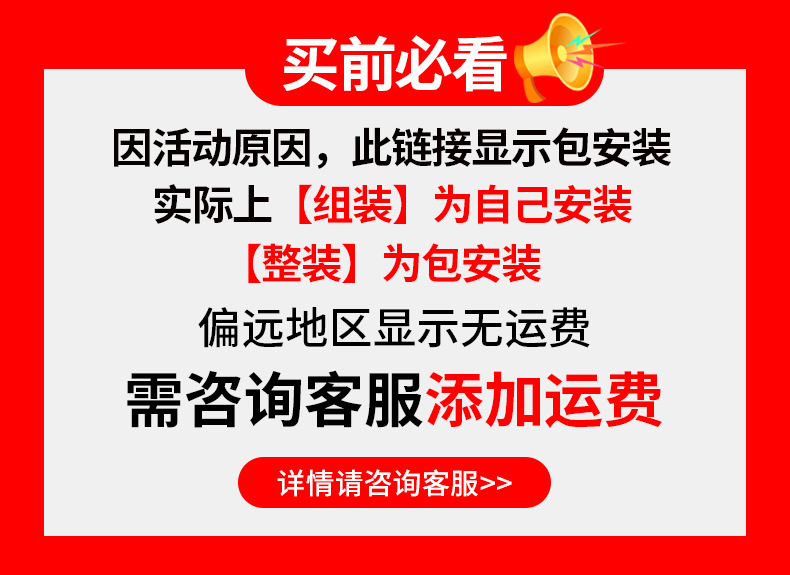 - Note: The assembly is for self-installation, and the whole assembly is the master's door-to-door installation.