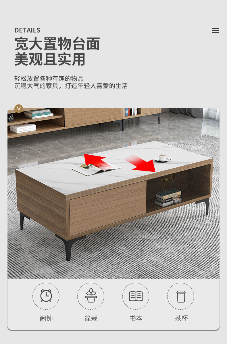 - 1.4 m TV cabinet 1.2 m coffee table walnut color