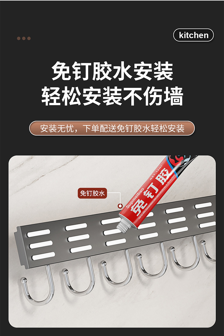 - Gun Grey [8 Hooks] Punch-free Installation · Dropped Free