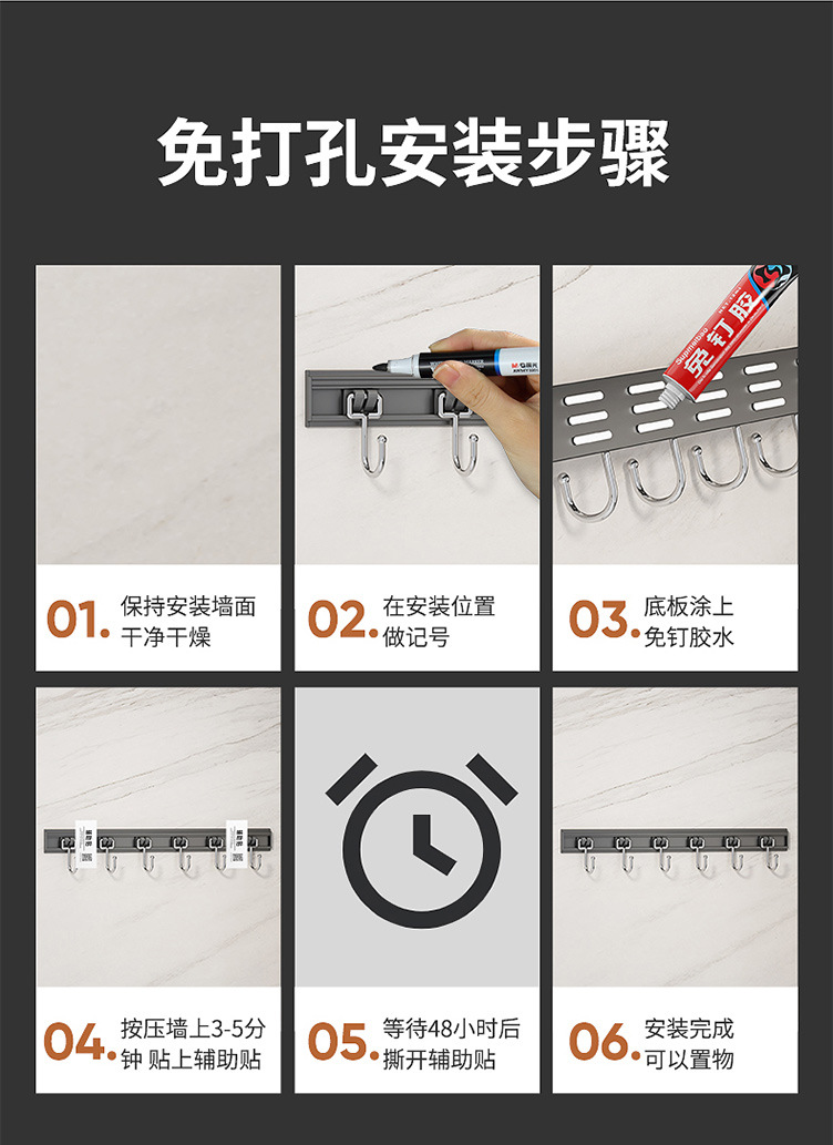 - Gun Grey [6 Hooks] Punch-free Installation · Dropped Free