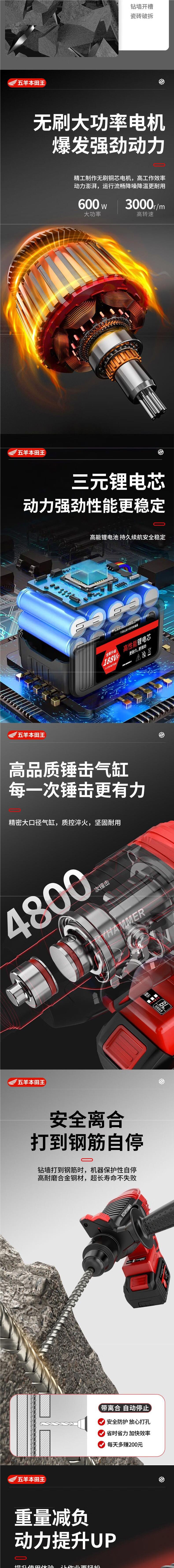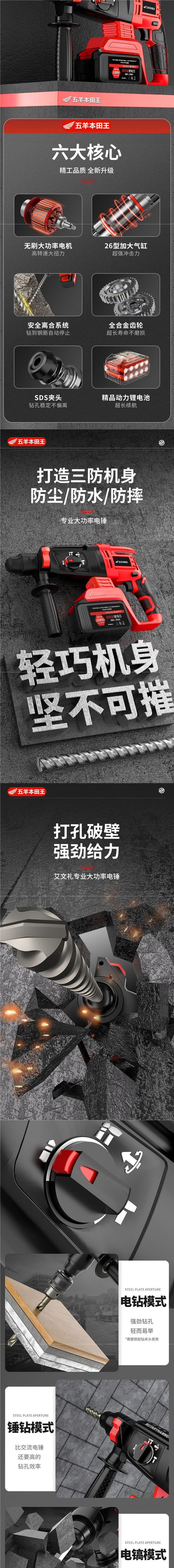 Wholesale lithium battery electric hammer electric pick dual purpose electric drill three use brushless rechargeable high power concrete household impact drill