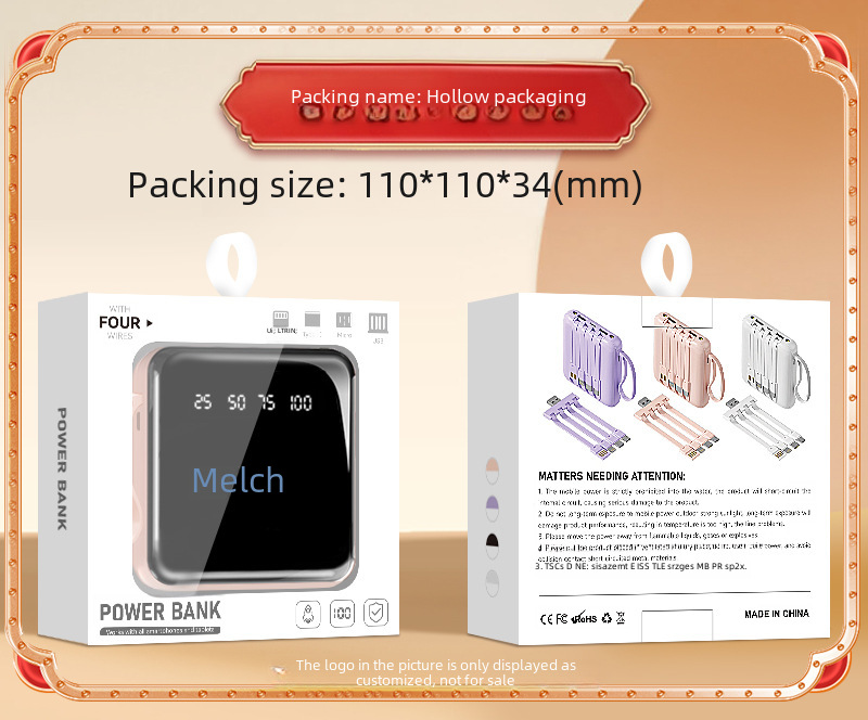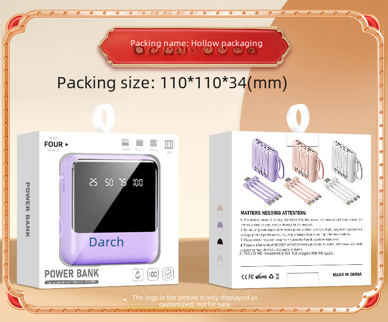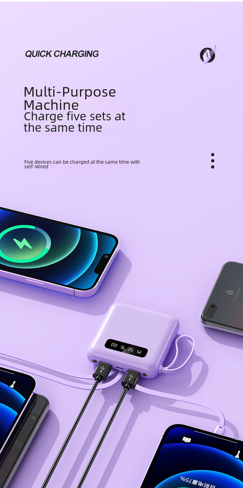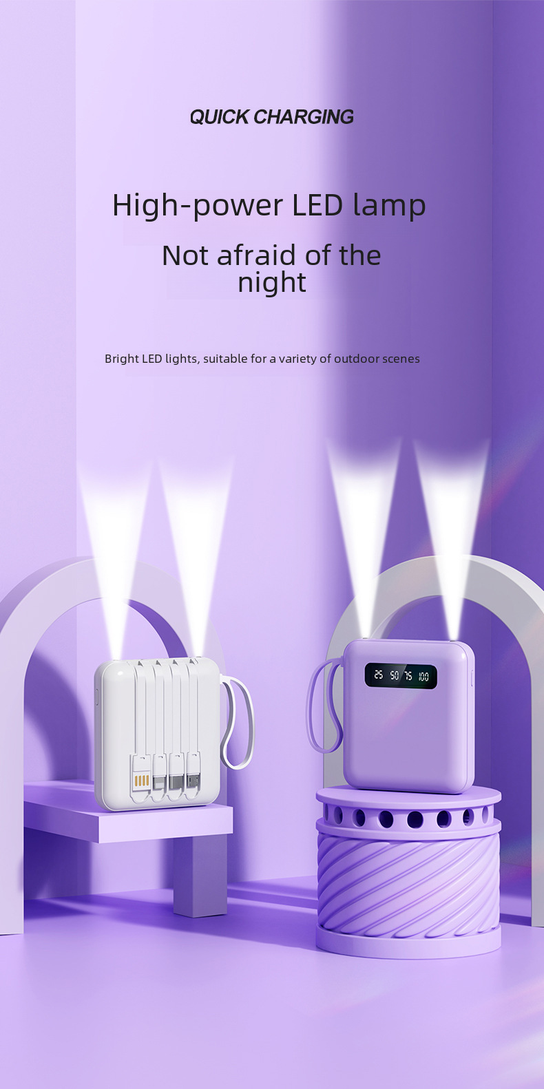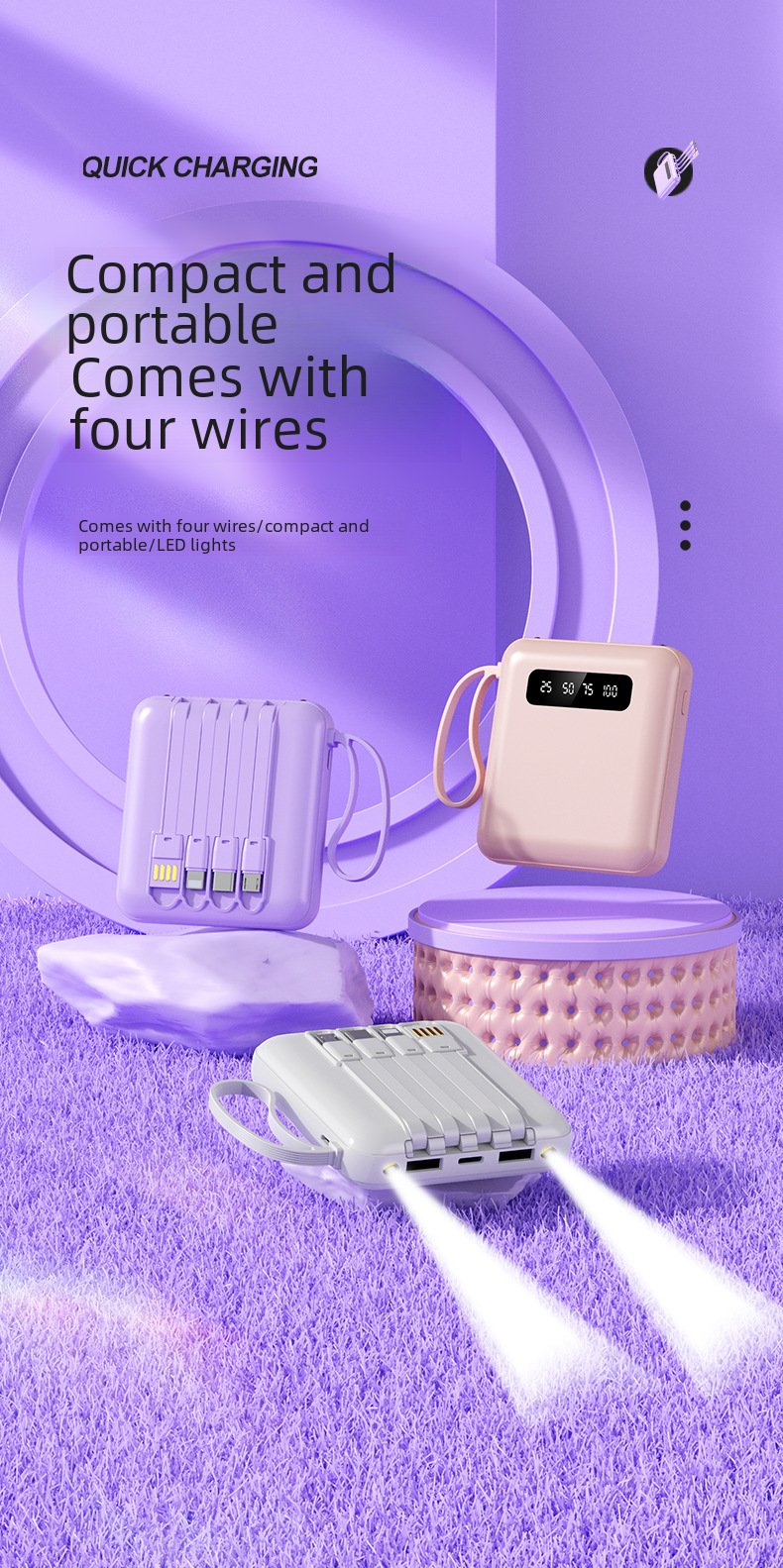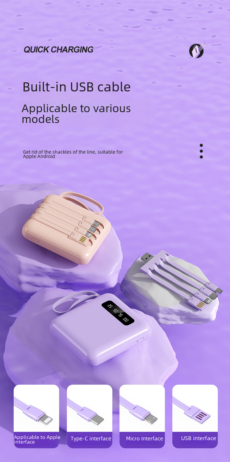 Wholesale mini self contained line charging treasure printed advertising large capacity compact mobile power gift custom logo