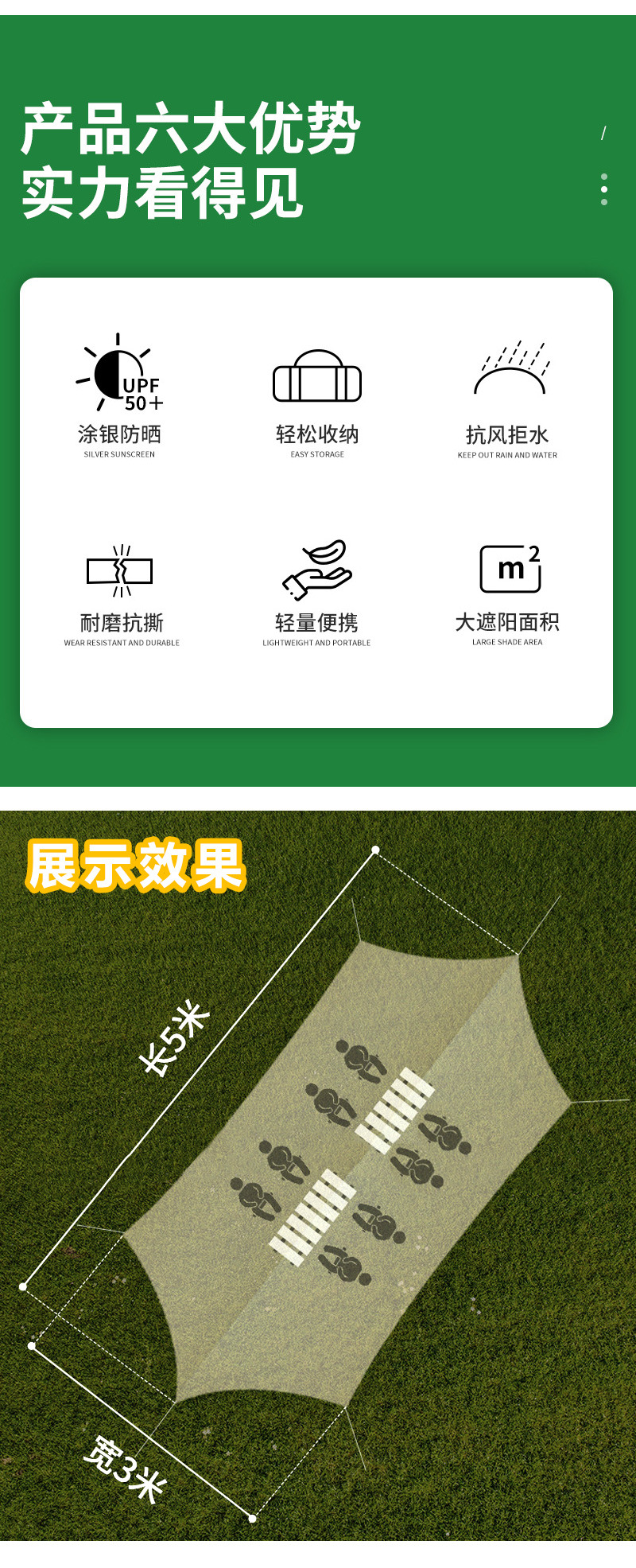 Wholesale silver coated canopy cloth portable sunshade cloth rainproof camping tent camping beach outdoor pergola