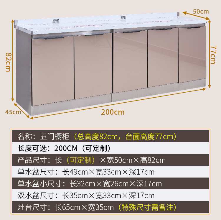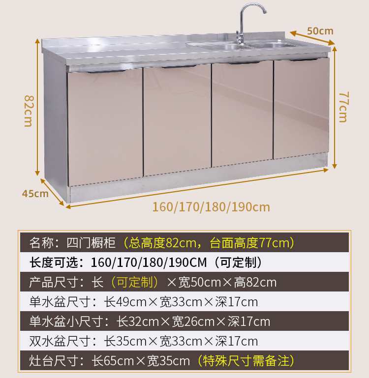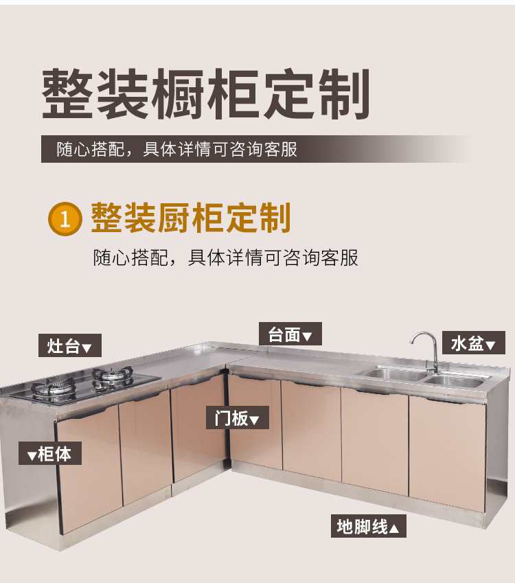 Wholesale stainless steel cabinet simple all steel kitchen cabinet household stove integrated rental cupboard assembly whole