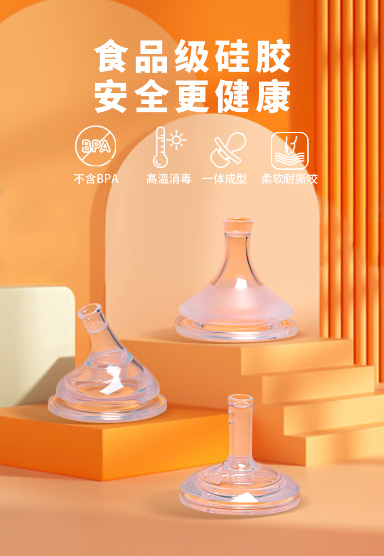 Wholesale wide mouth feeding bottle replacement mouth feeding bottle food grade liquid silicone suction nozzle baby suction nipple