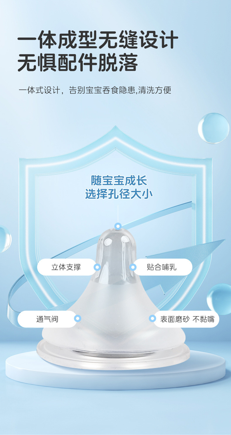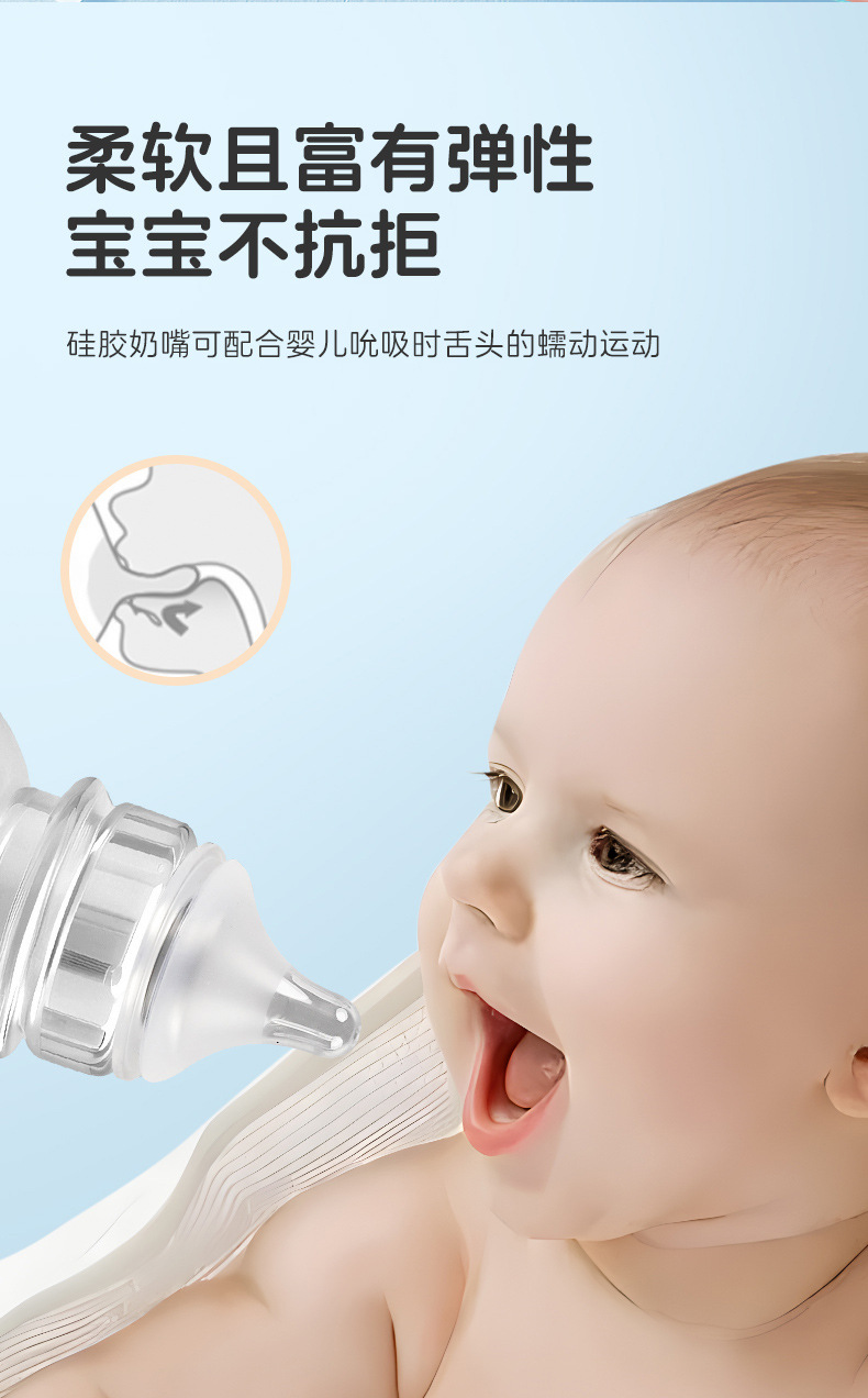 Wide caliber nipple universal simulation real baby imitation breast milk scrub super soft silicone baby bottle nipple anti flatulence