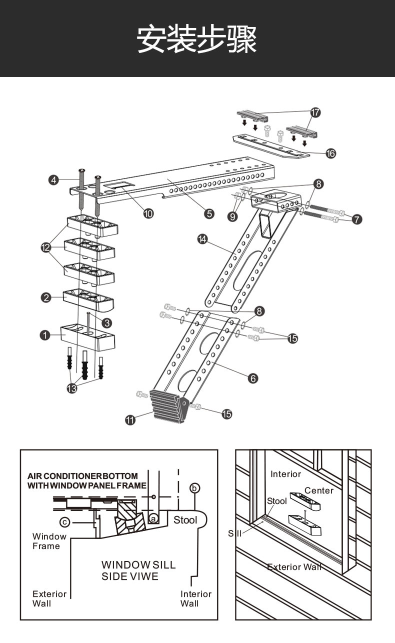 Window air conditioning accessories factory wholesale air conditioning bracket support set adjustable window air conditioning window bracket