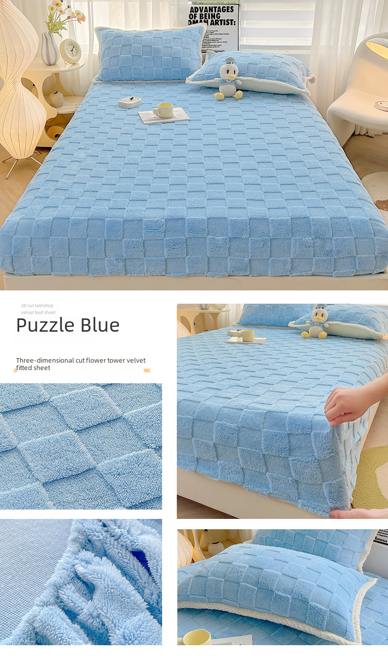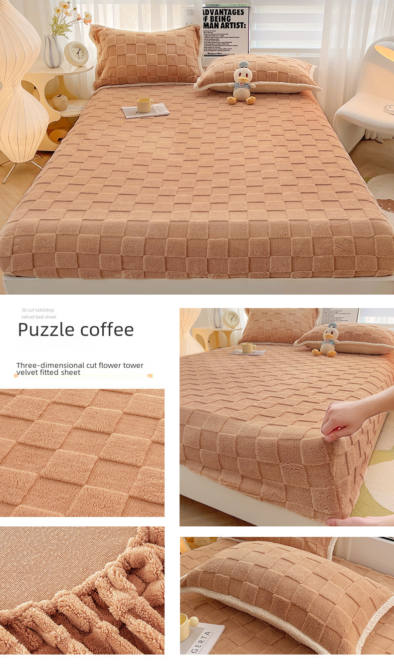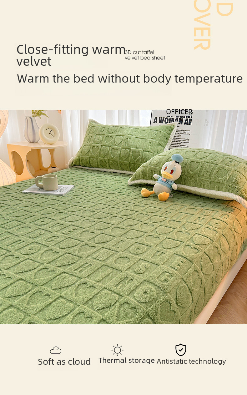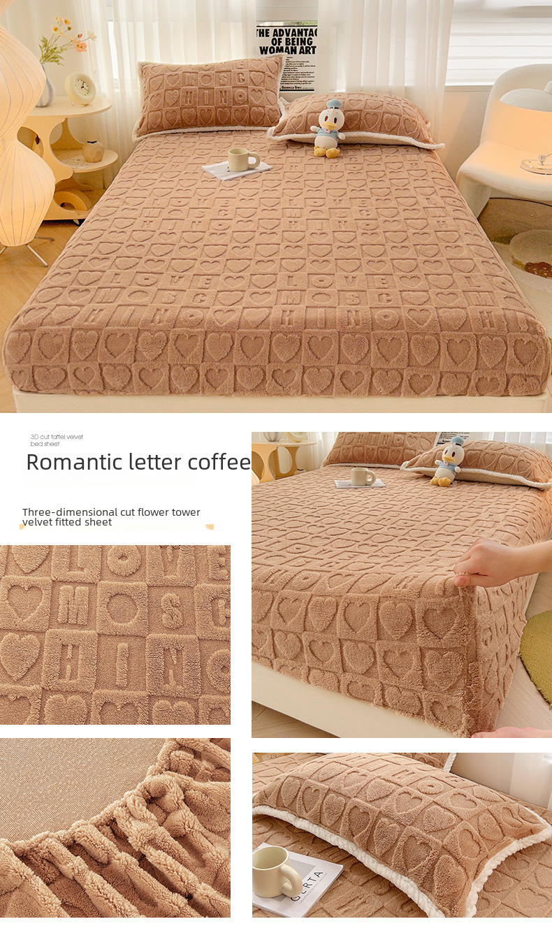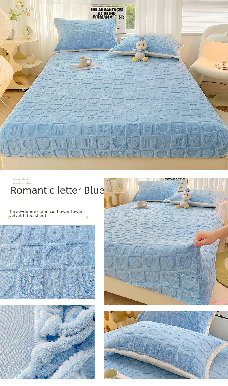 Winter Tower velvet fitted sheet single non slip thickened coral velvet bed sheet cover Simmons mattress protective cover three piece set