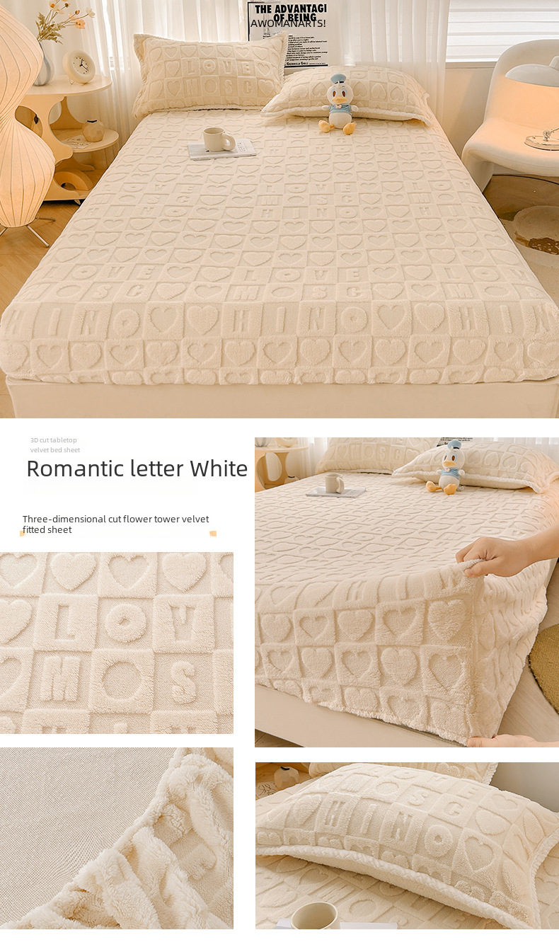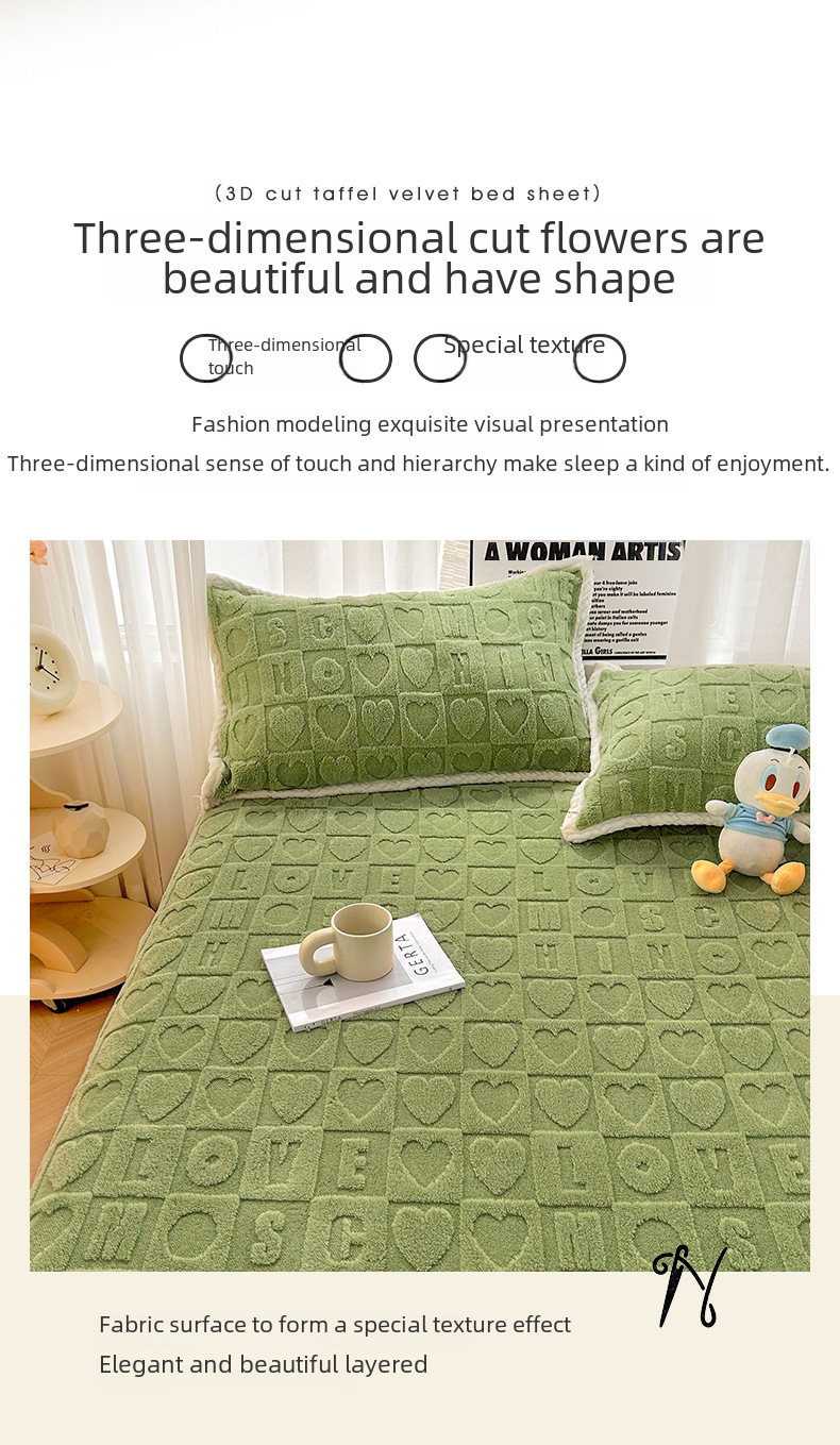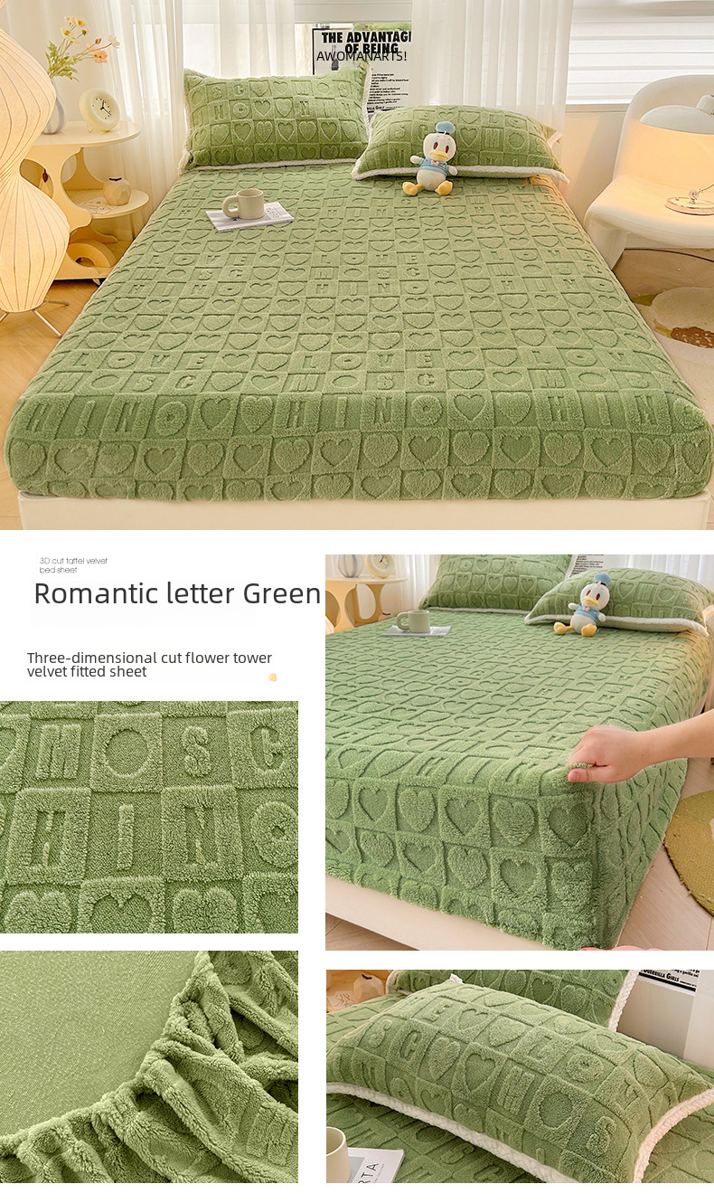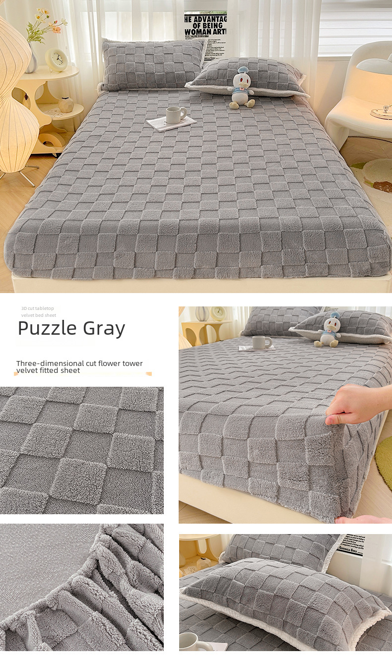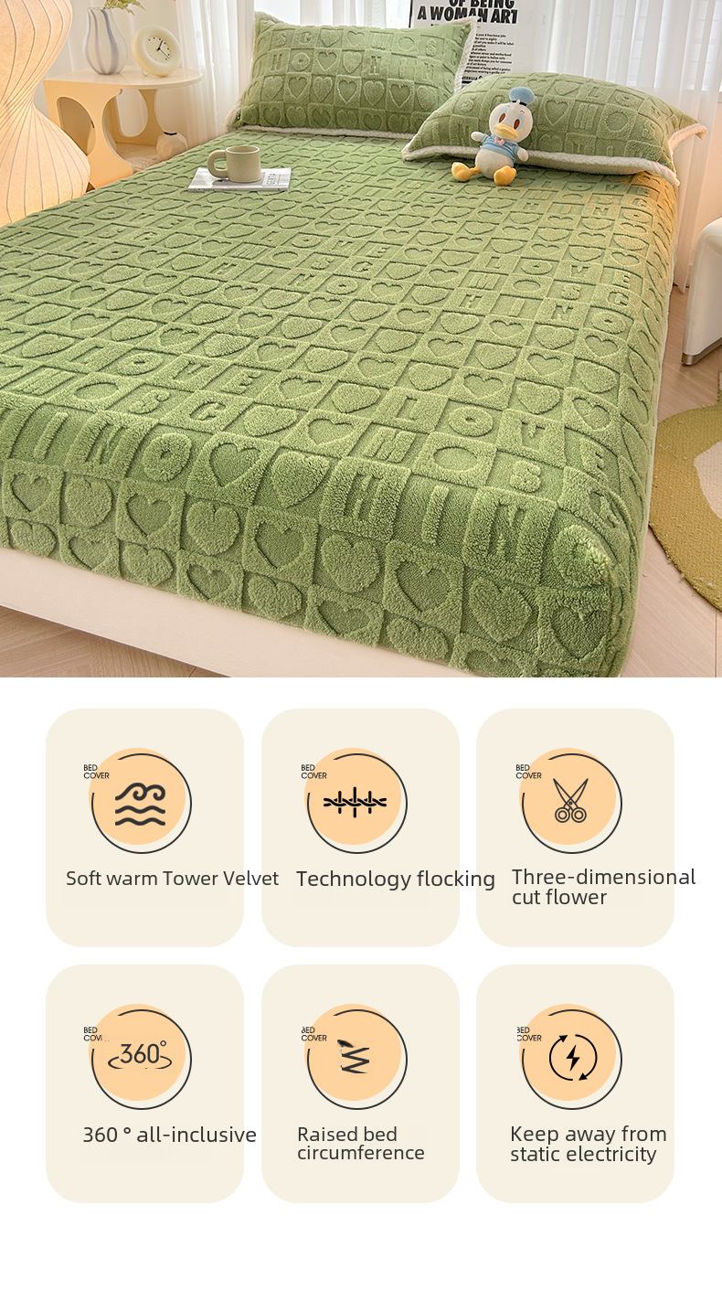 Winter Tower velvet fitted sheet single non slip thickened coral velvet bed sheet cover Simmons mattress protective cover three piece set