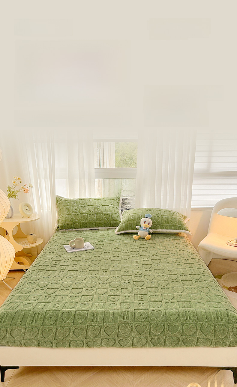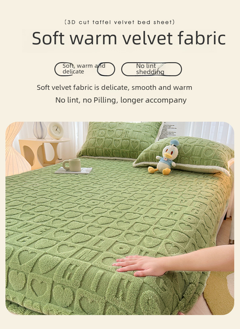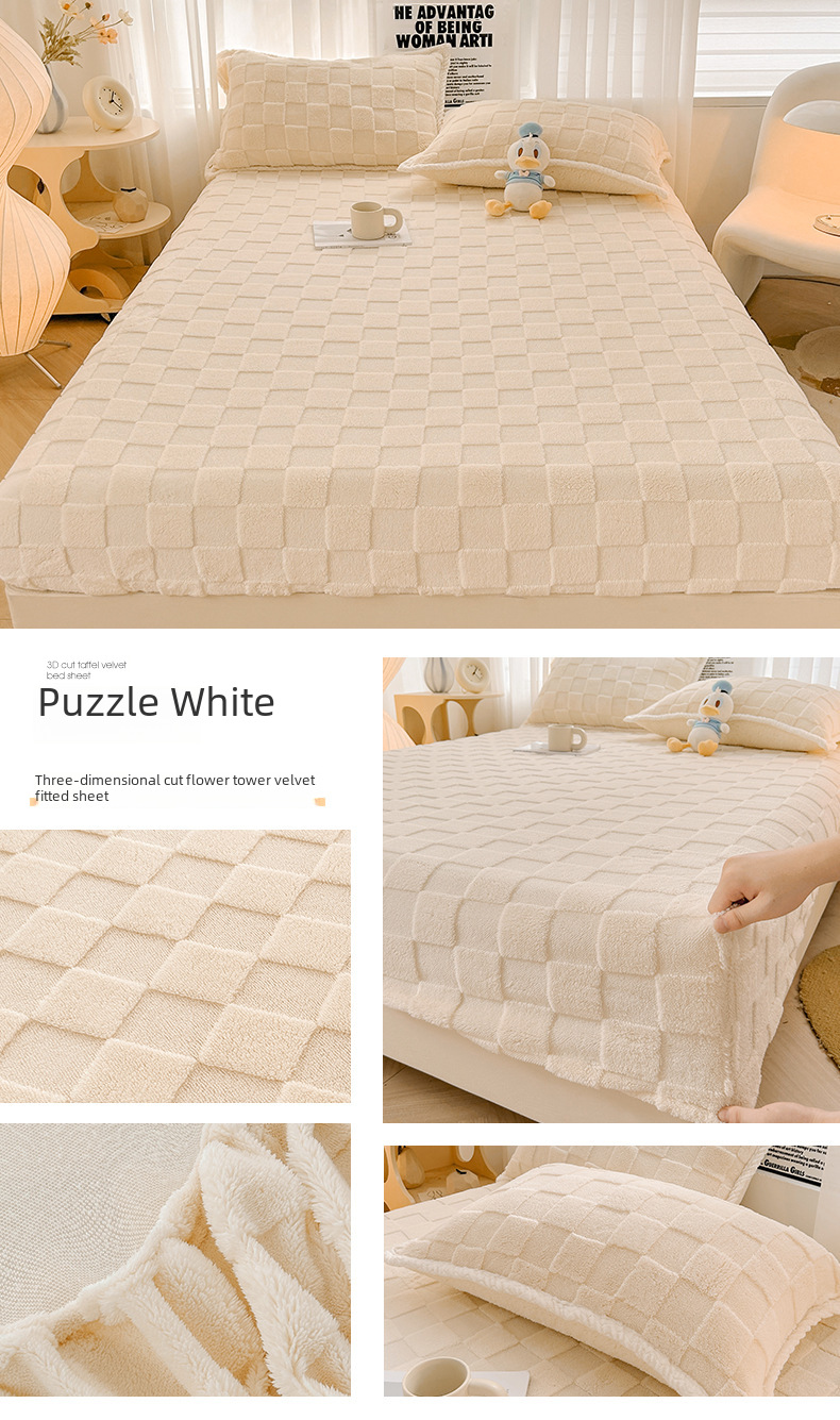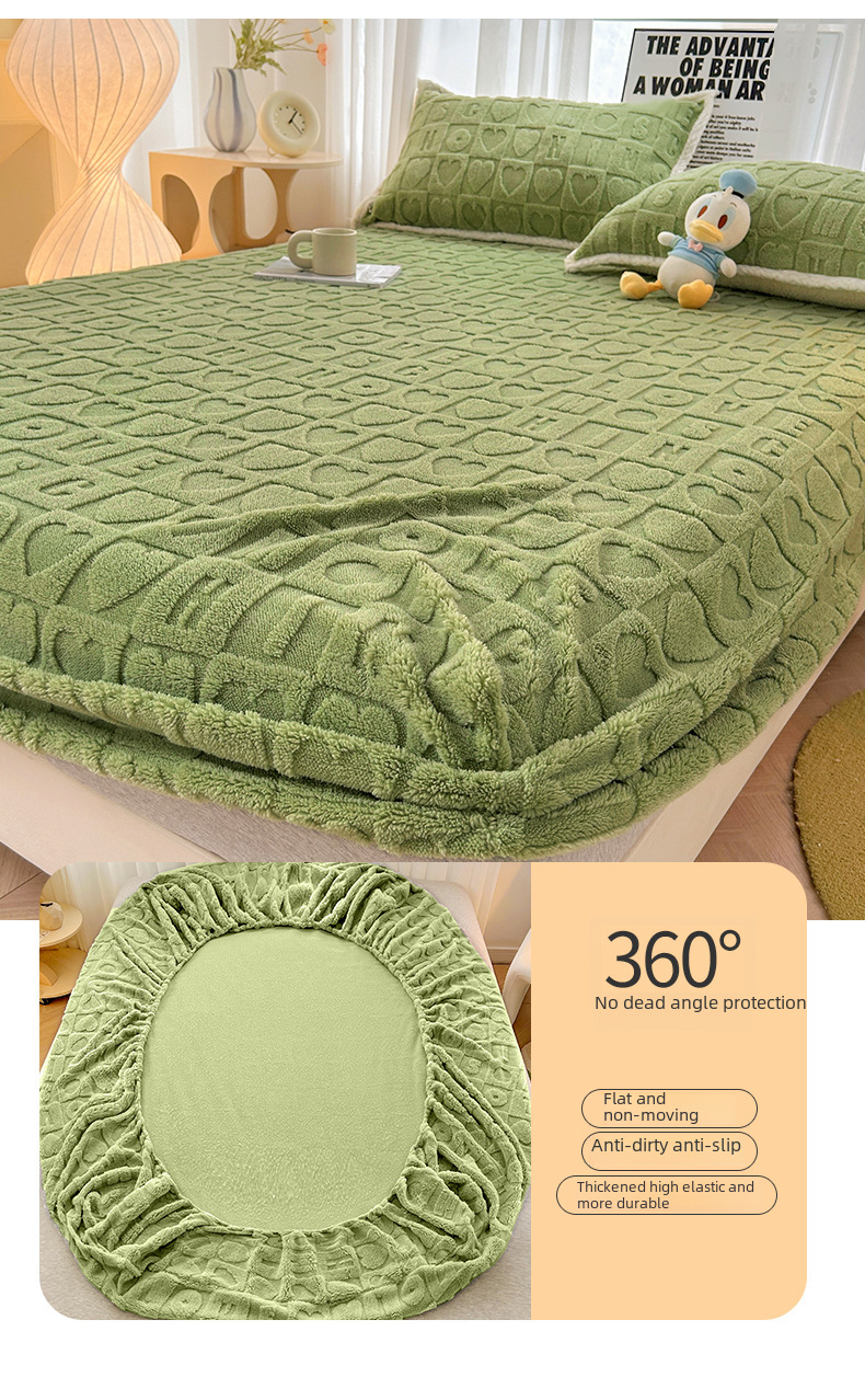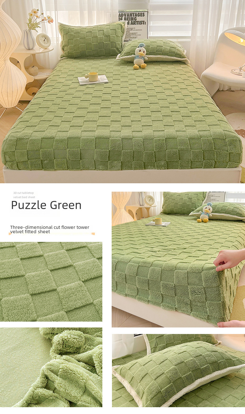 Winter Tower velvet fitted sheet single non slip thickened coral velvet bed sheet cover Simmons mattress protective cover three piece set