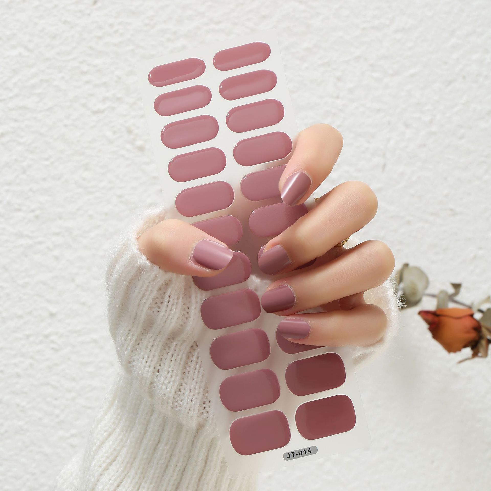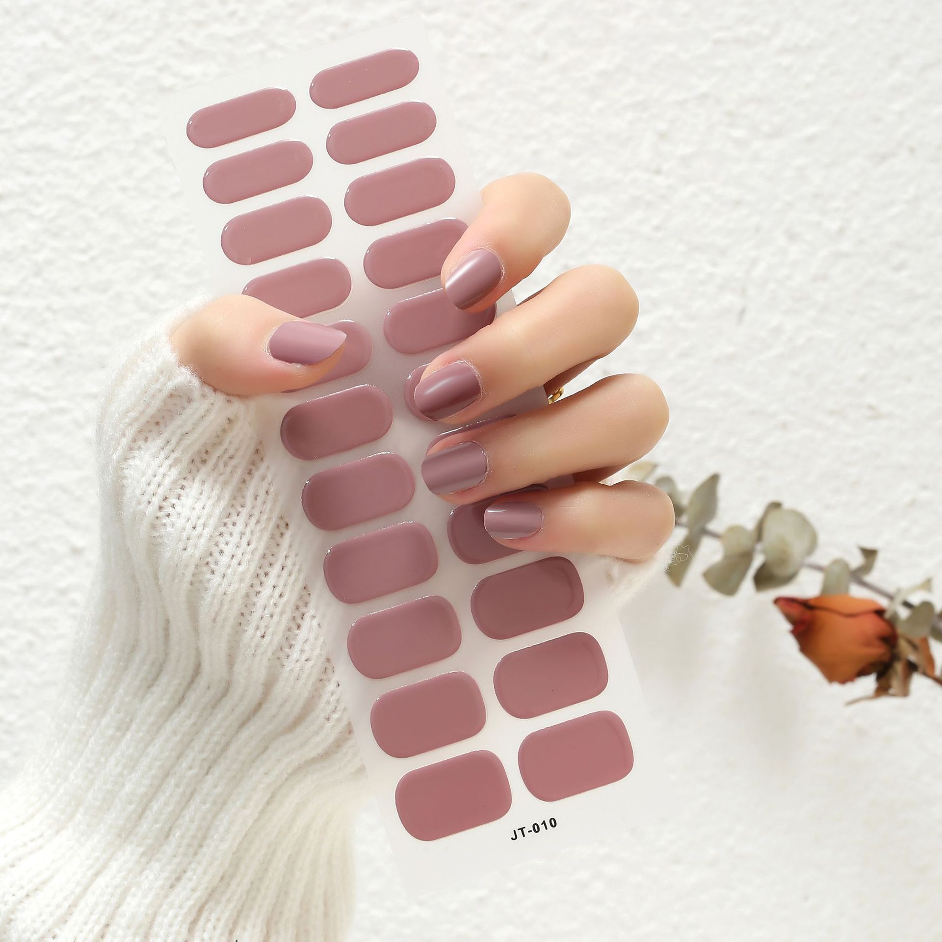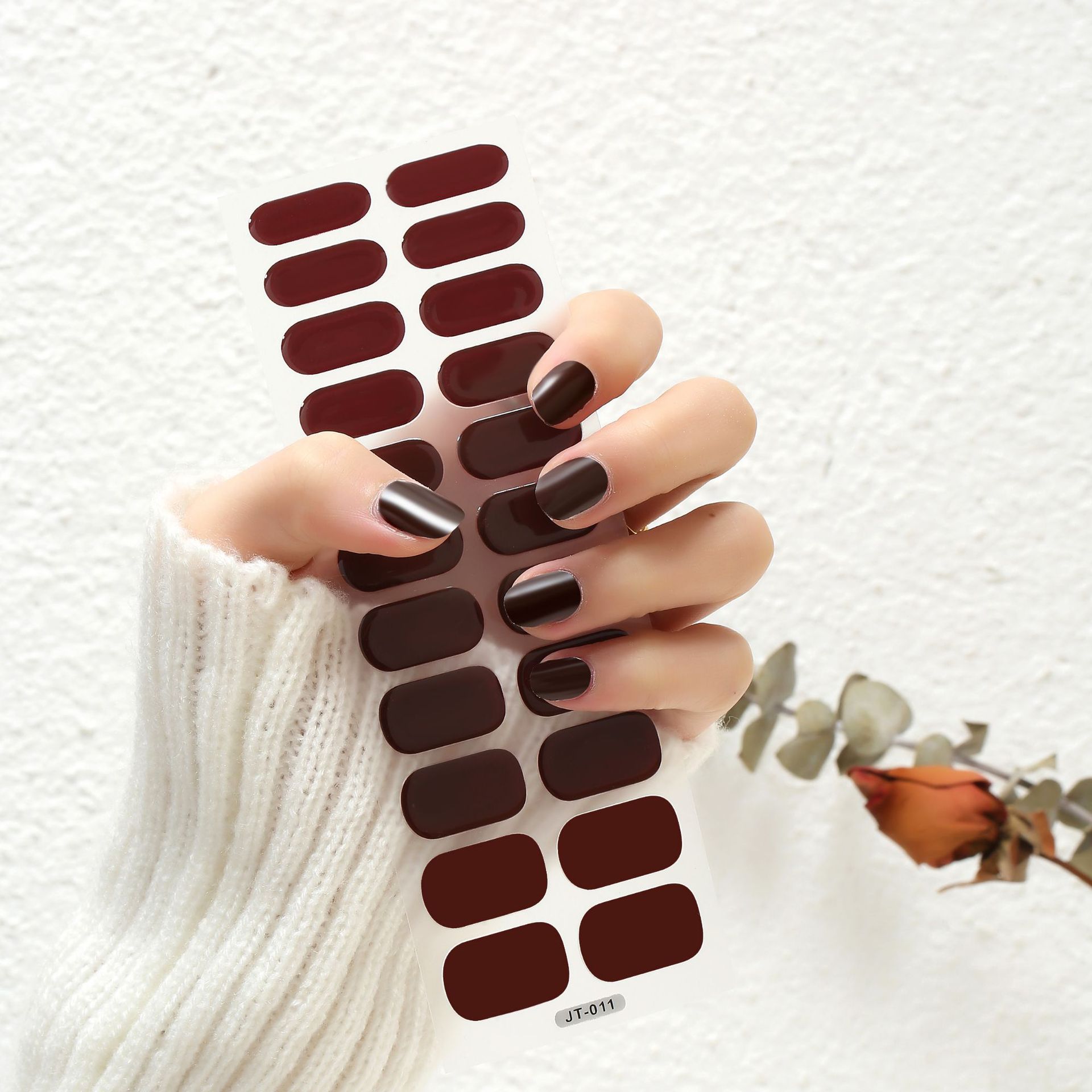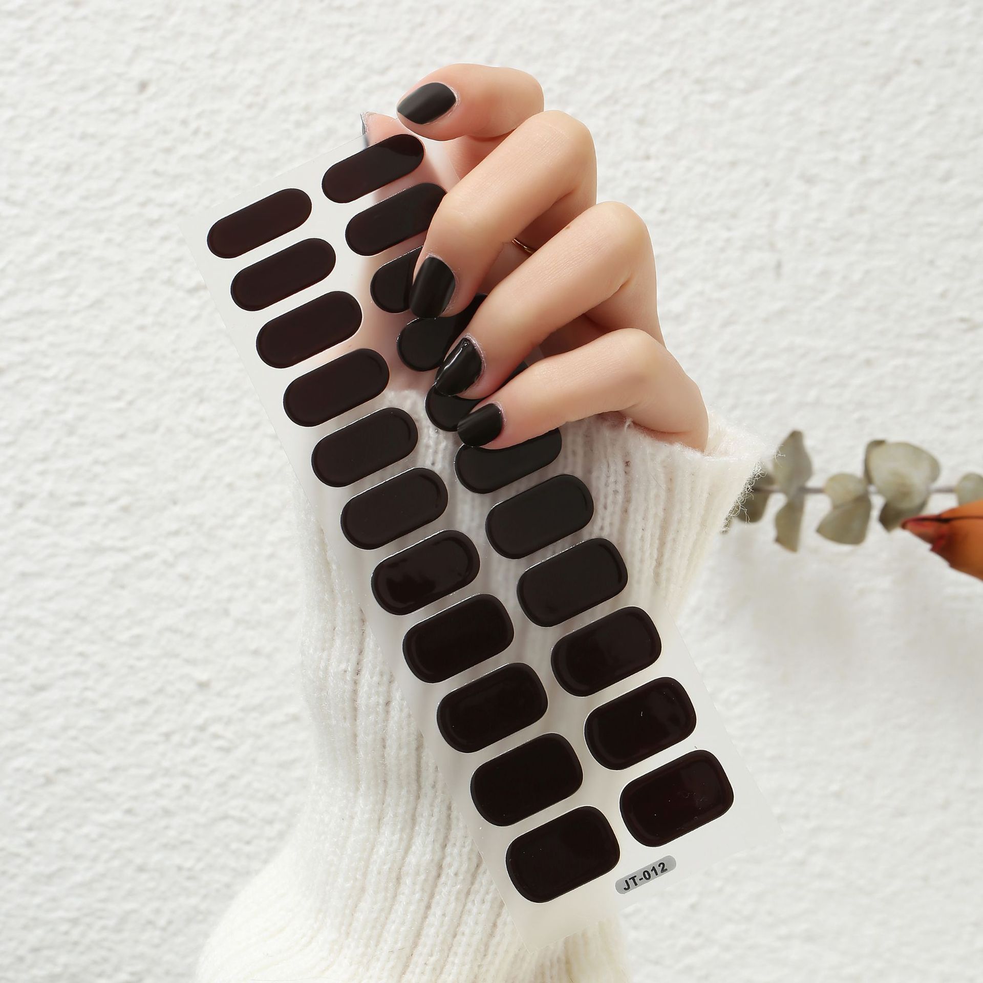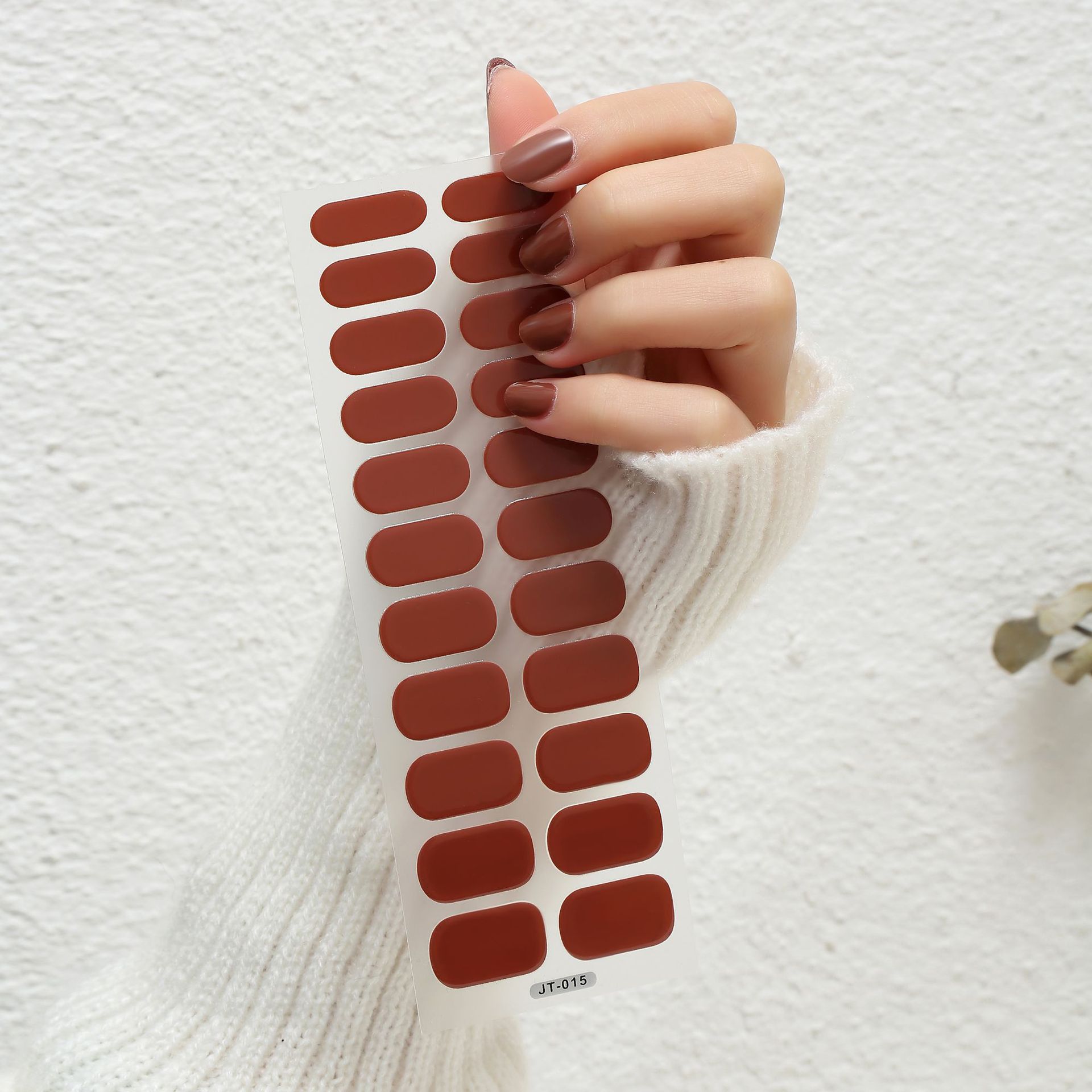 Winter and spring new semi curing gel nail stickers solid color 22 stickers phototherapy full stickers waterproof Nail Polish glue nail glue
