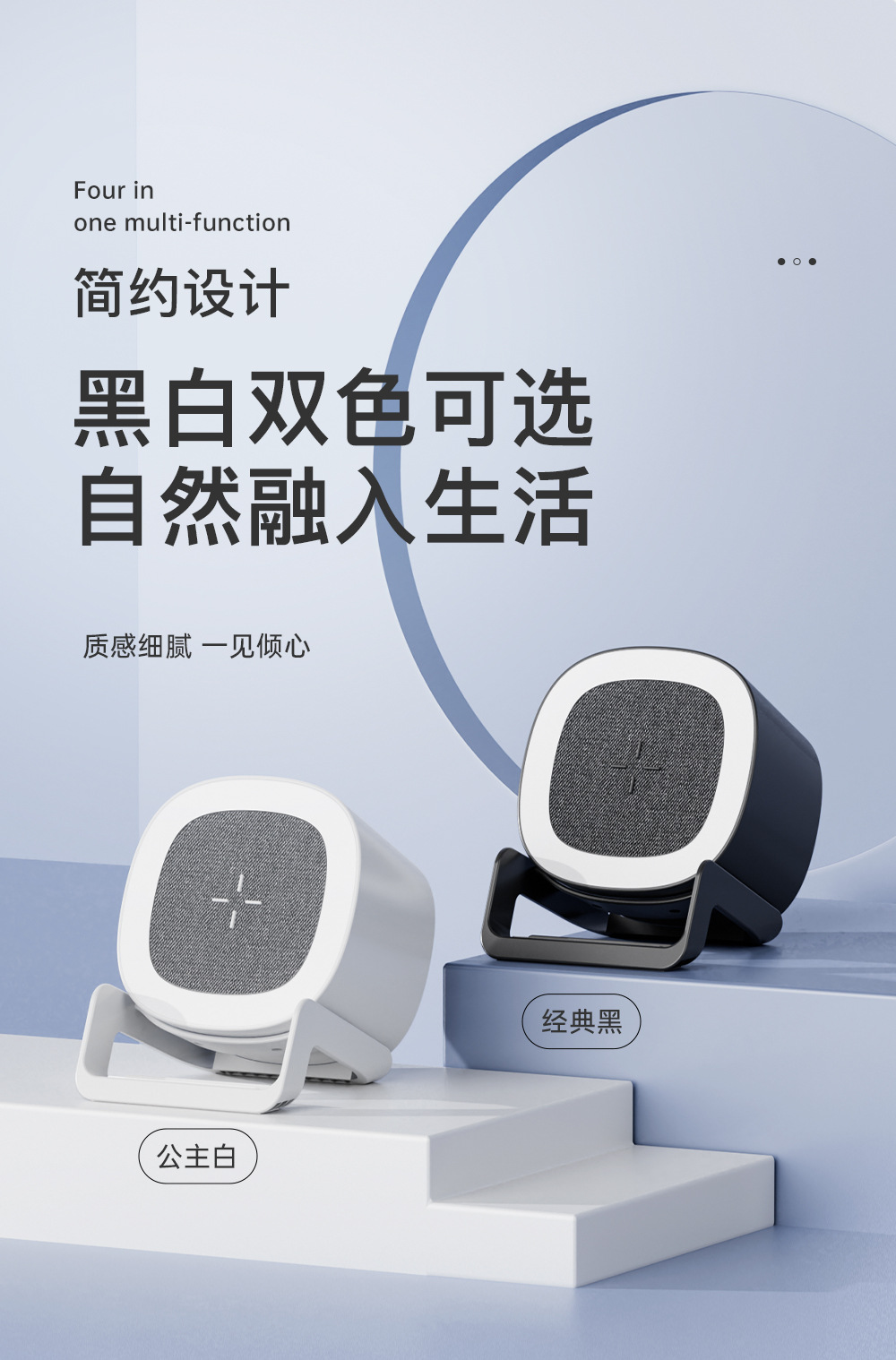Wireless Bluetooth speaker mobile phone wireless charger outdoor household four-in-one simple black and white mini audio wholesale