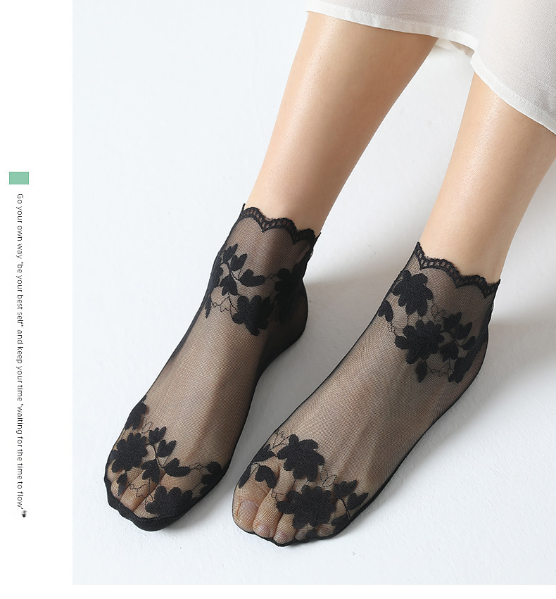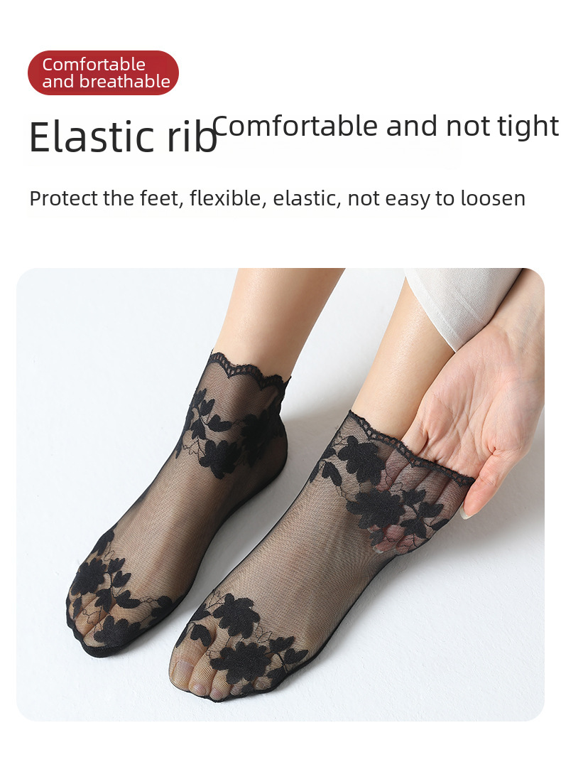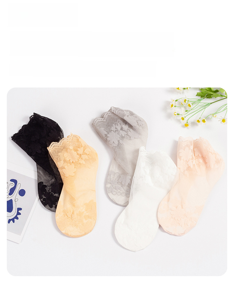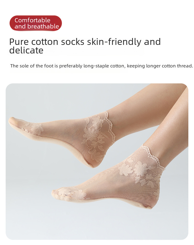 Women s summer thin lace lace lace socks cotton bottom short mid calf ankle socks hollow breathable non slip mesh socks