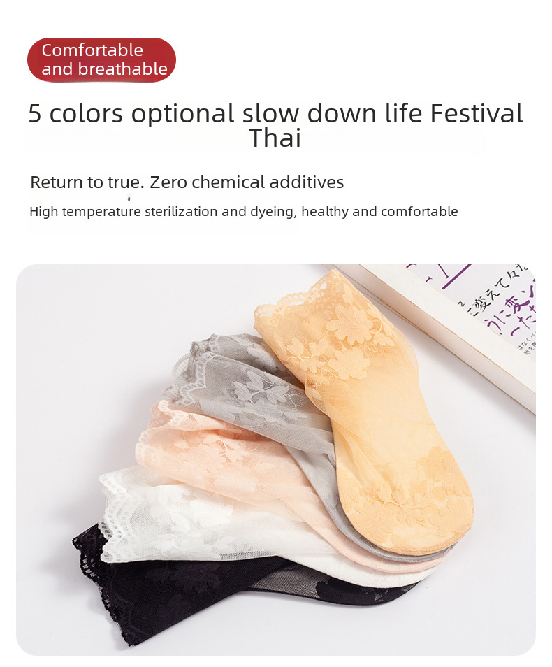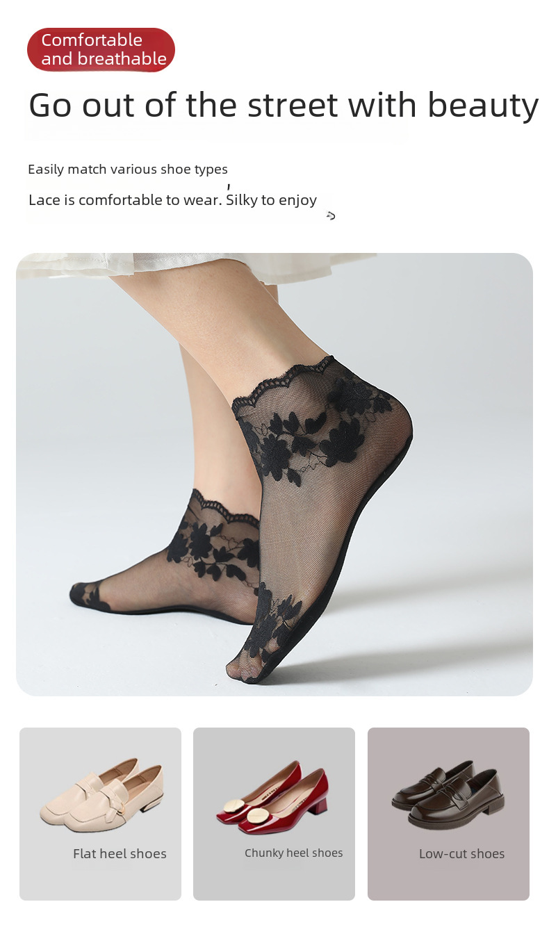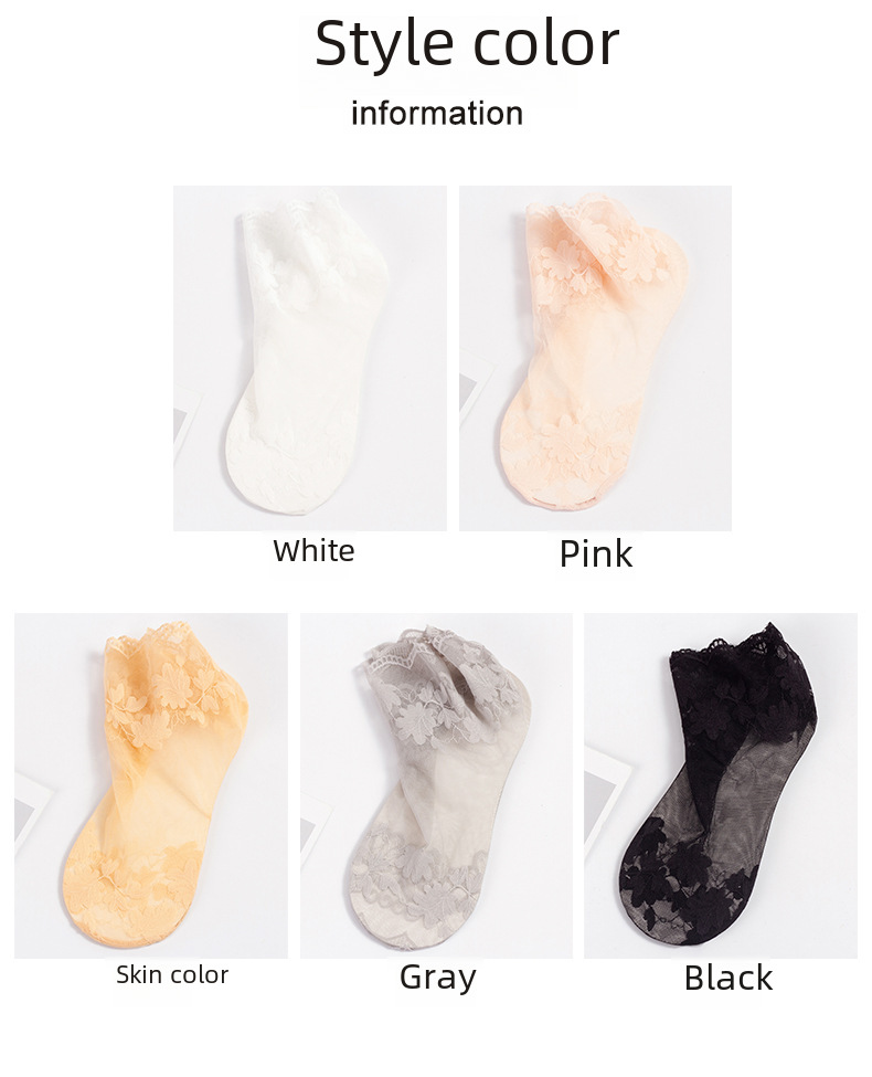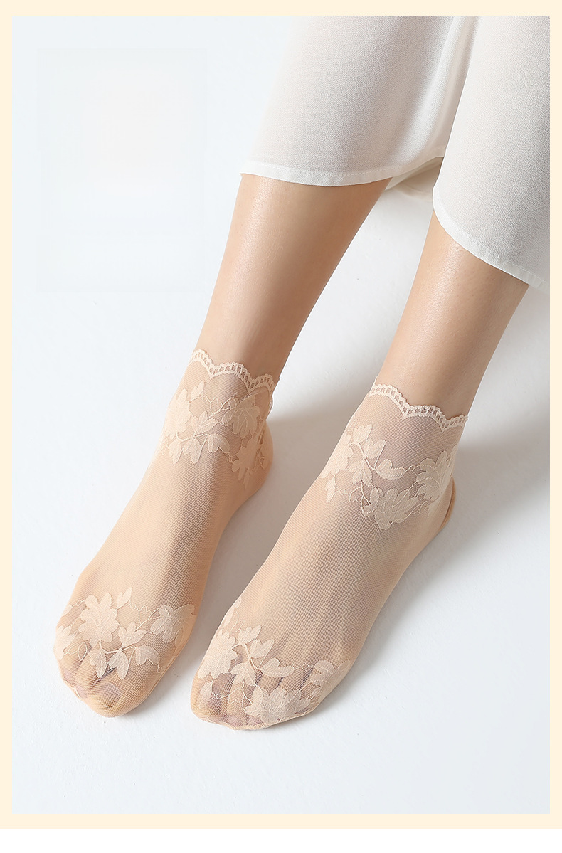 Women s summer thin lace lace lace socks cotton bottom short mid calf ankle socks hollow breathable non slip mesh socks