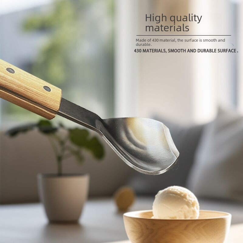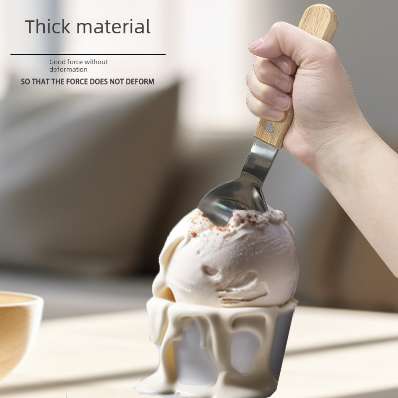 Wooden handle stainless steel ice cream shovel cross border ice cream scoop digger ice cream shovel fruit spoon Kitchen Tools